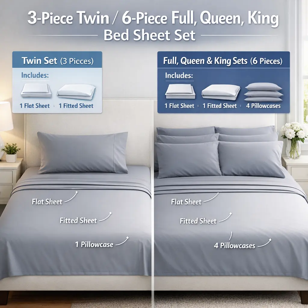·3-Piece Set – Includes 1 flat sheet, 1 fitted sheet, and 1 pillowcase.