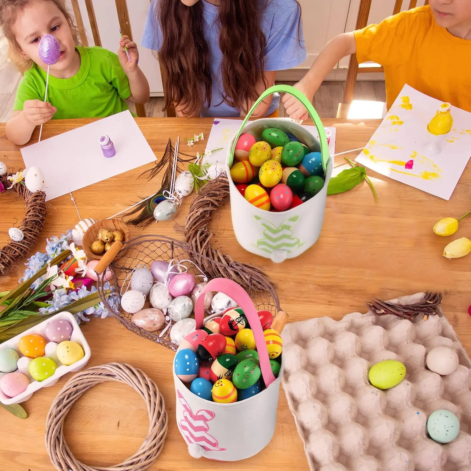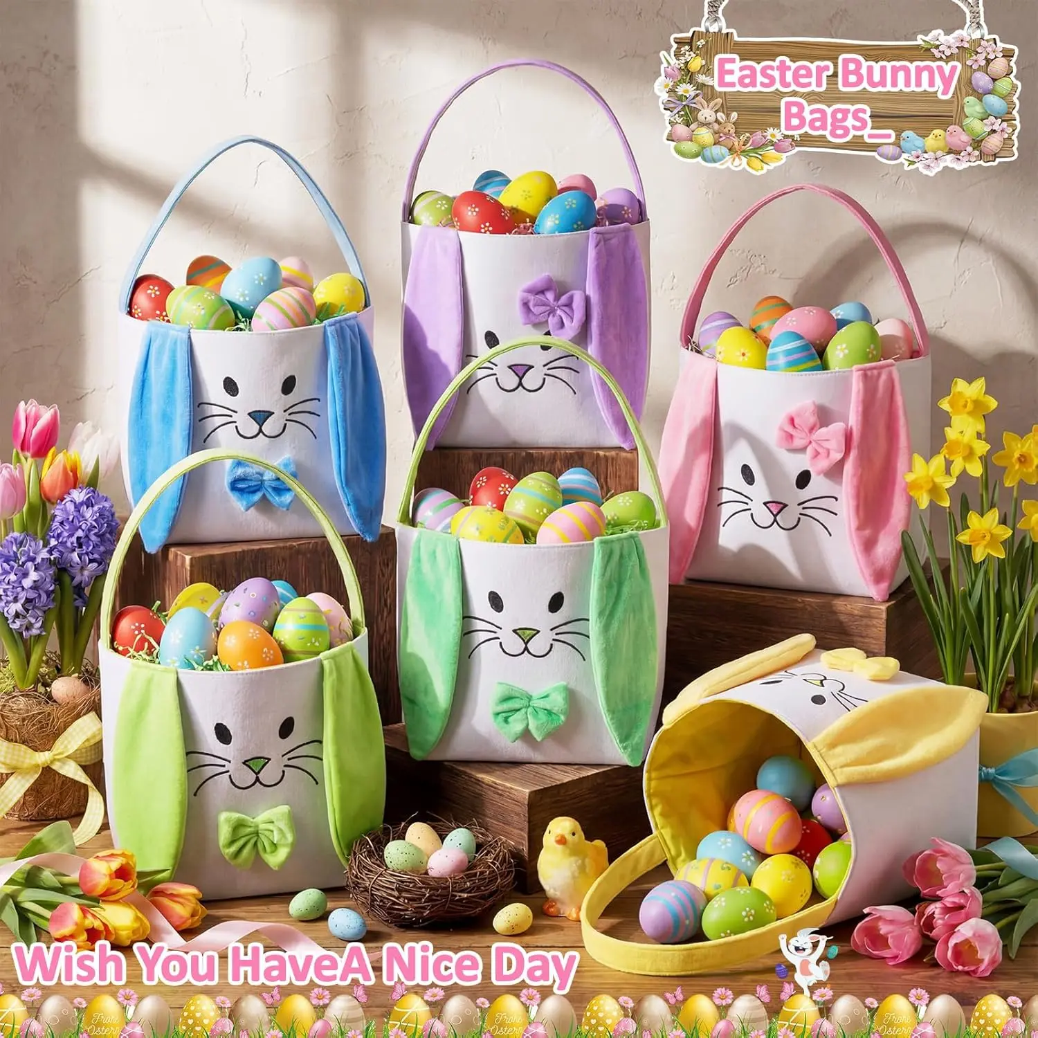 ·Perfect for Easter: These 4/6 Pcs Easter Bunny Basket Bags are ideal for Easter egg hunts, parties, and favors. 🎉