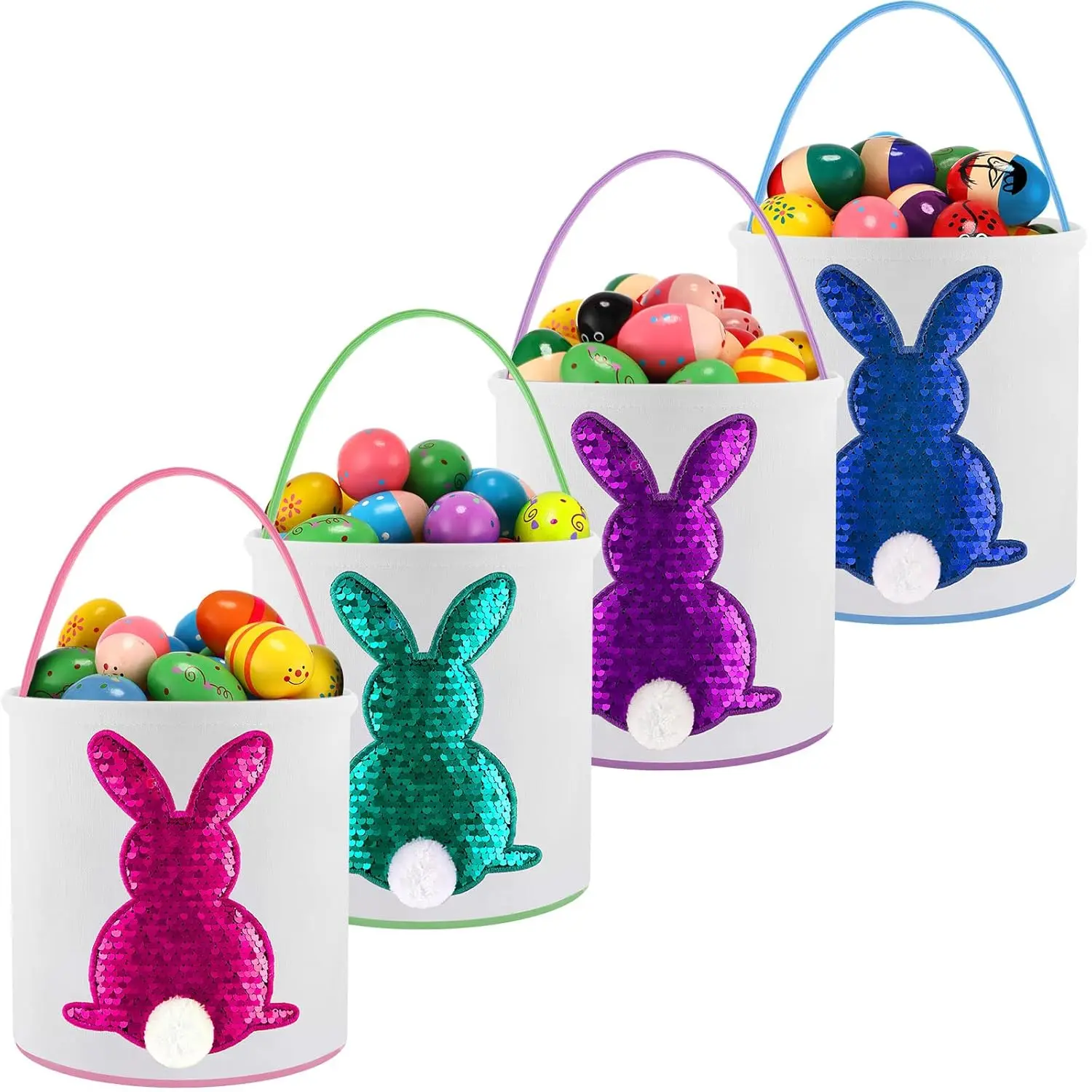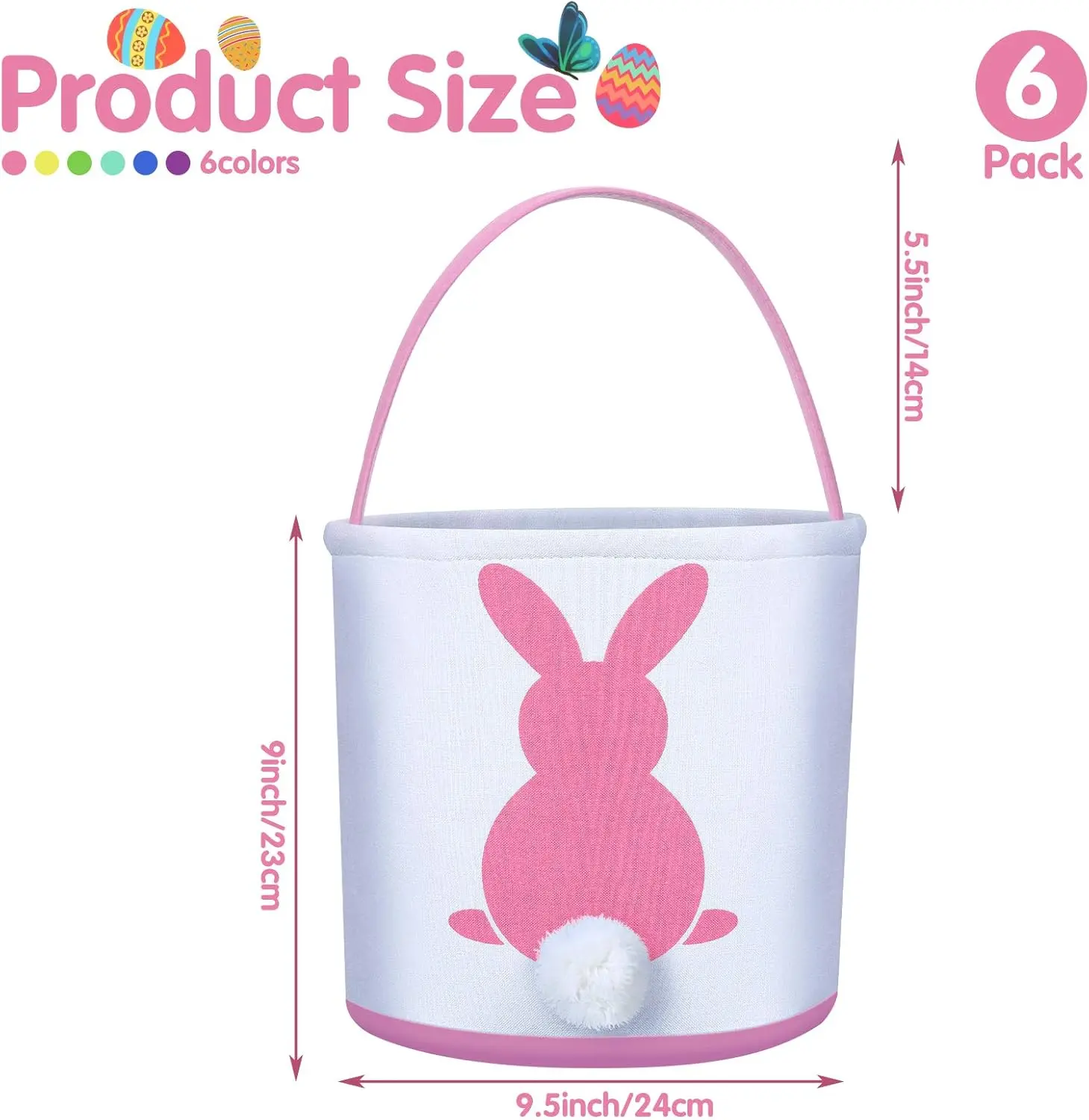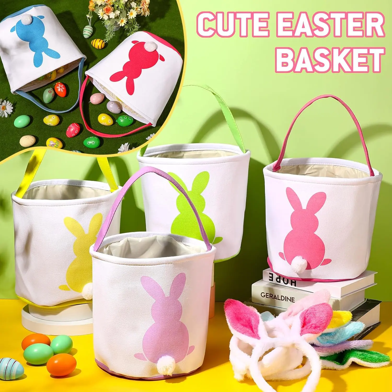 ·Quantity: 📦You will receive 4/6 pieces of adorable and sturdy reusable Easter bunny basket bags in 4/6 different eye-catching colors, and you can write your kid's name or other messages on the bag with marker.And Fresh Style(with Bunny Ears) Paired with the plush bunny headband, made from comfortable and soft material。