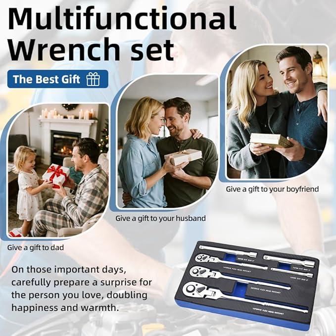 The EVA foam tray avoids impact and provides long-term storage. Beautiful packing makes this flex head ratchet set an ideal gift for Father's Day, Birthday, Anniversary, Christmas, and Valentine's Day.