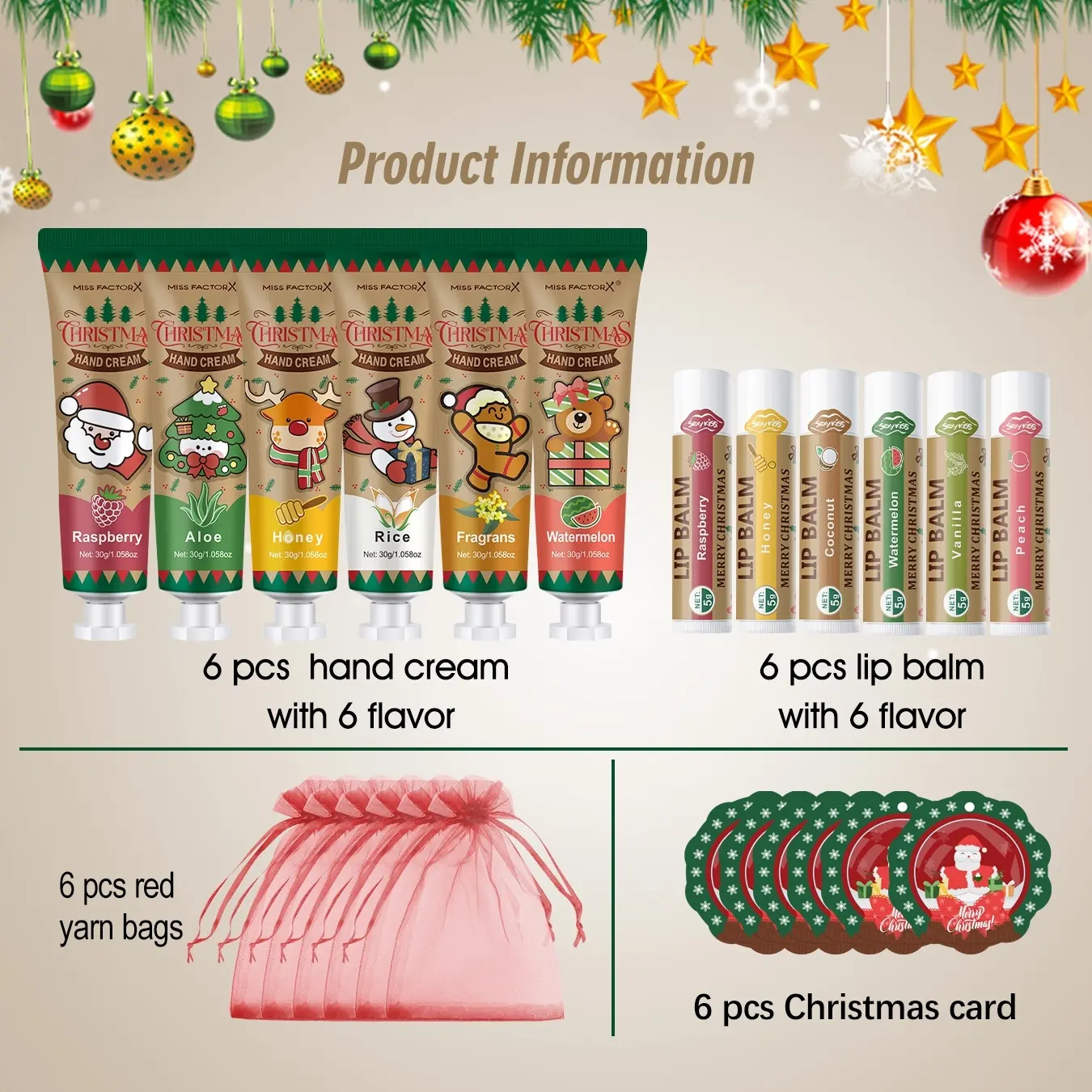 5. Christmas Gift Set, Hand Cream & Lip Balm, 6 Scents, Moisturizing, Includes Holiday Cards & Bags, Wedding Thank You Gifts, Valentine's Day