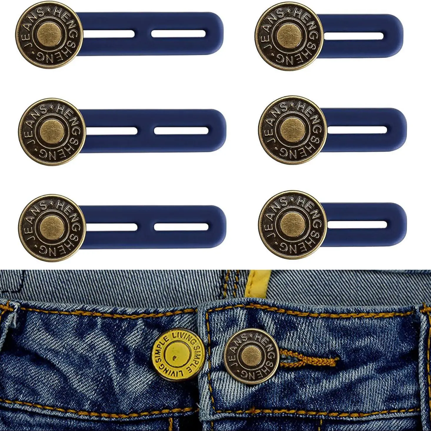 6 Piece Set Jeans Button Extenders, Adjustable Buttons, No Sewing Required, Unisex Pants Button Extenders, Adjustable Waistband Extension, Durable Design