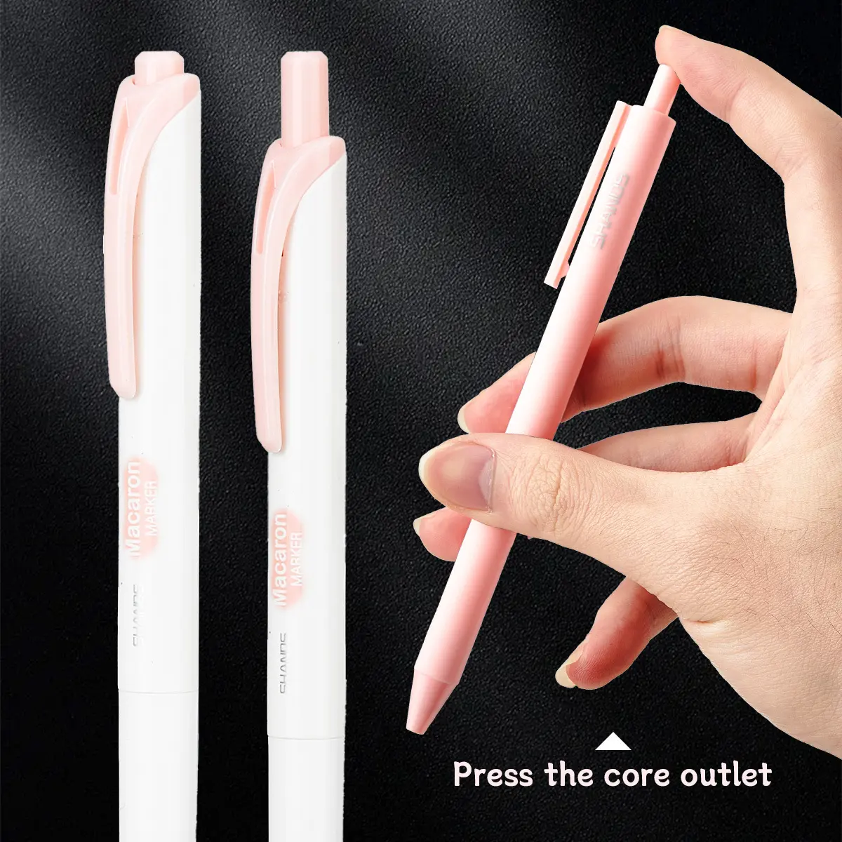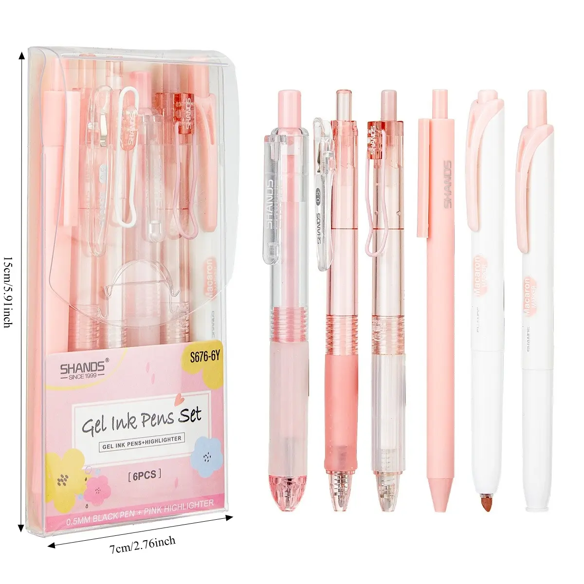 6 pieces of large-capacity push-action quick-drying neutral pens. Learning set. 0.5mm black minimalist neutral pen. Marking fluorescent pen. Suitable for school activities rewards. Christmas gift. Set with pen