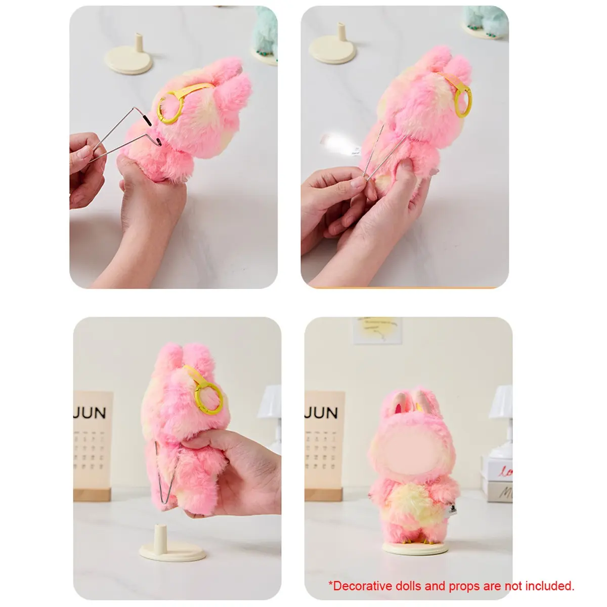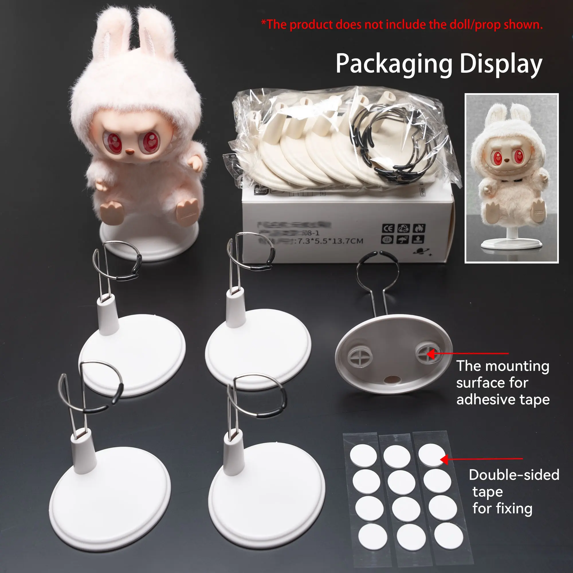 5. 6-Piece Plush Pendant Display Set with Adhesive & Adjustable Stand, Designed for Labubu/Skullpanda/Dimoo/Molly Dolls - Ideal Display Kit for Fashion Enthusiasts, Reusable