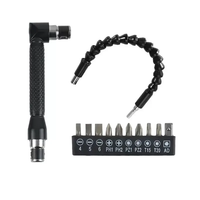 ✨6pcs Right-Angle Drill Bit Accessory Set includes essential tools for your drilling tasks.This kit features 3 360° rotatable socket adapters in 1/4, 3/8, and 1/2 inch sizes.Perfect for impact grade tasks, these adapters ensure versatility and efficiency.🔄