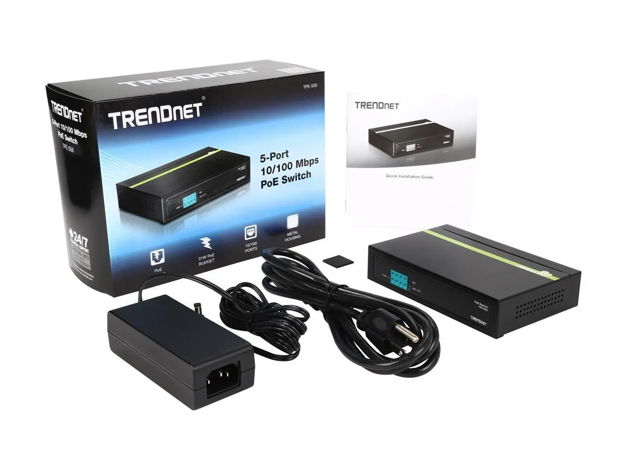 5. TRENDnet 6-Port Fast Ethernet PoE+ Switch, 4 x Fast Ethernet PoE Ports, 2 x Fast Ethernet Ports, 60W PoE Budget, 1.2 Gbps Switch Capacity, Metal, Black, TPE-S50