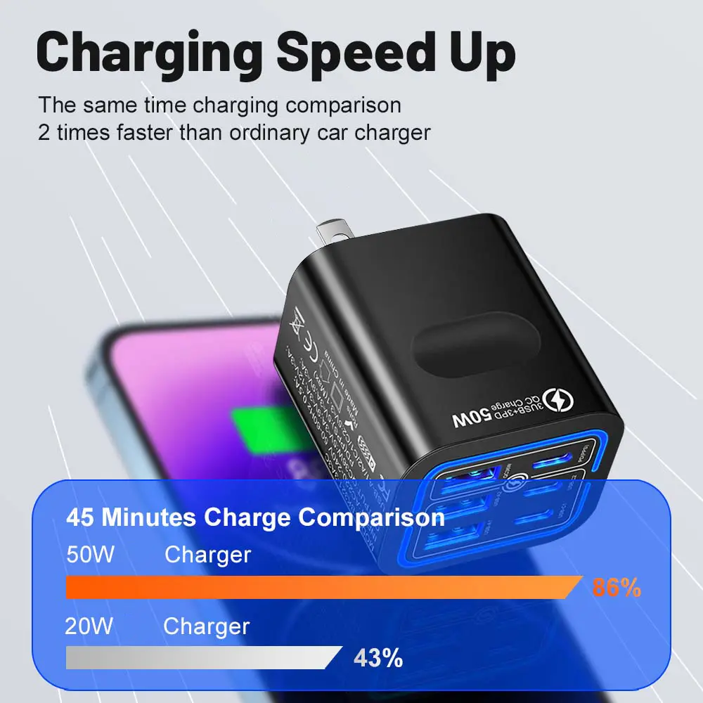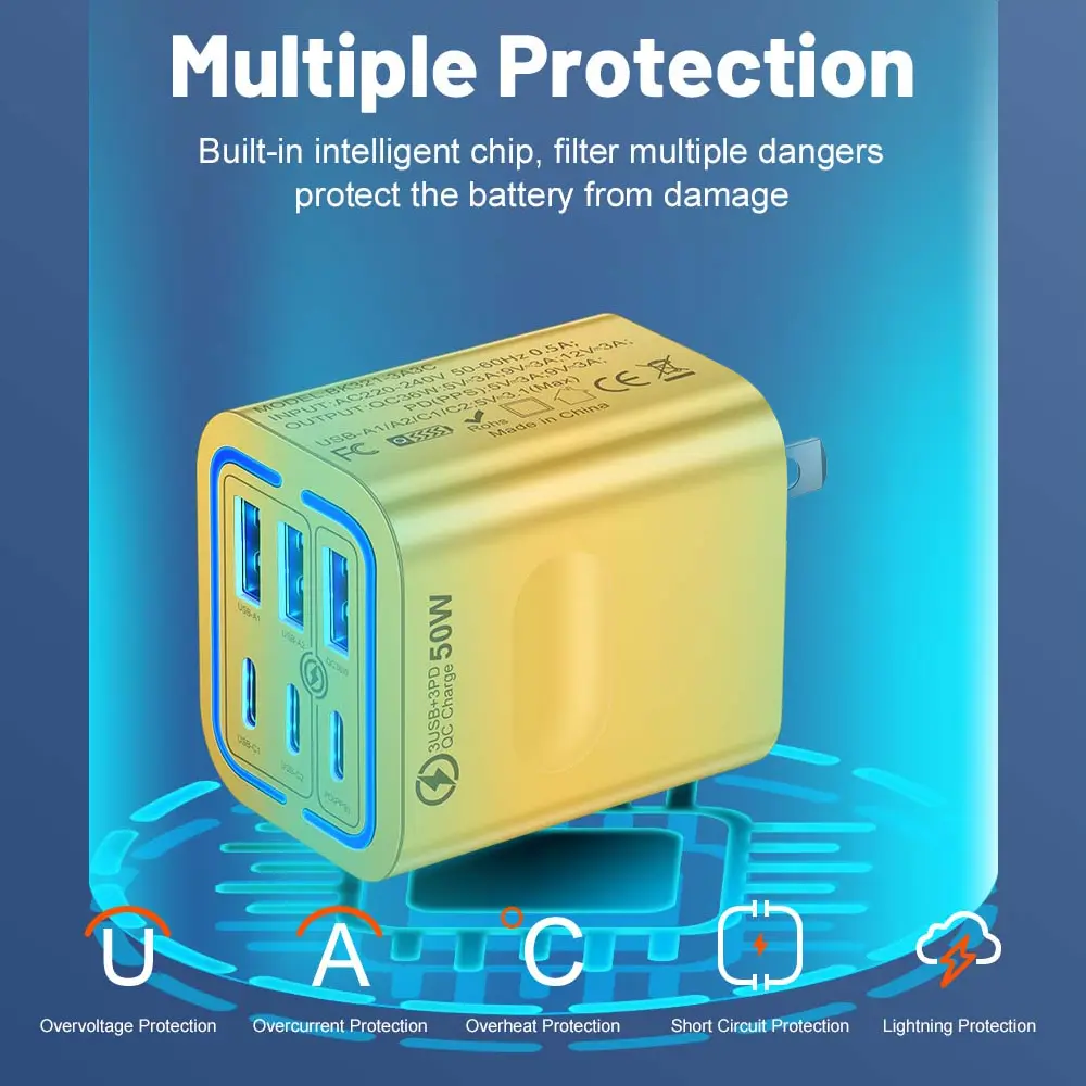 Experience the ultimate blend of functionality and modern design. The 6-Port Square Charging Head not only accelerates your charging needs with its powerful 50W output but also provides peace of mind with built-in safety features. Upgrade your charging station today and transform the way you power your devices.