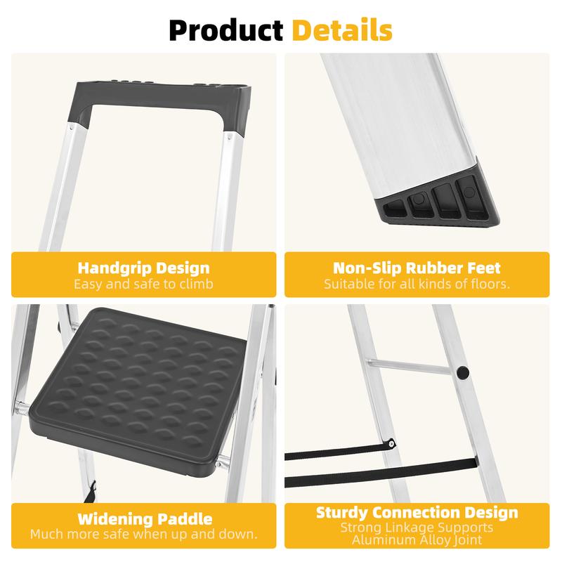 ·【Ultimate Safety Design】- Engineered for security, it features non-slip rubber feet, ribbed anti-slip pedals, a galvanized steel platform, and riveted connections for maximum stability and a secure footing on every step.