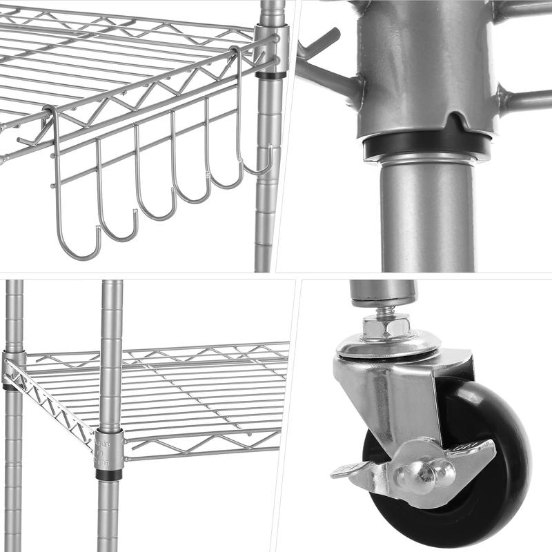 ·DIY &HEIGHT ADJUSTABLE: The distance between the mesh sheets can be adjusted, and the shelf can be adjusted into a suitable height according to the height of the stored items.With side hooks, which can be used to hang items YOU WANT