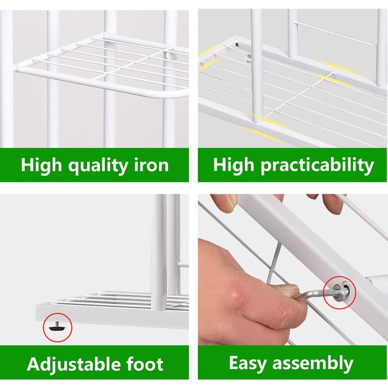The 6 tier 7 pot one is around 4 feet 2in. Very easy to build. And very sturdy. It's similar build like the dollar tree 6$ cube shelfs, the same metal material. I really like it
