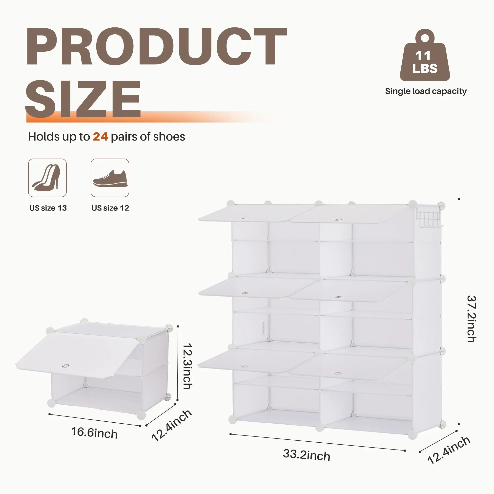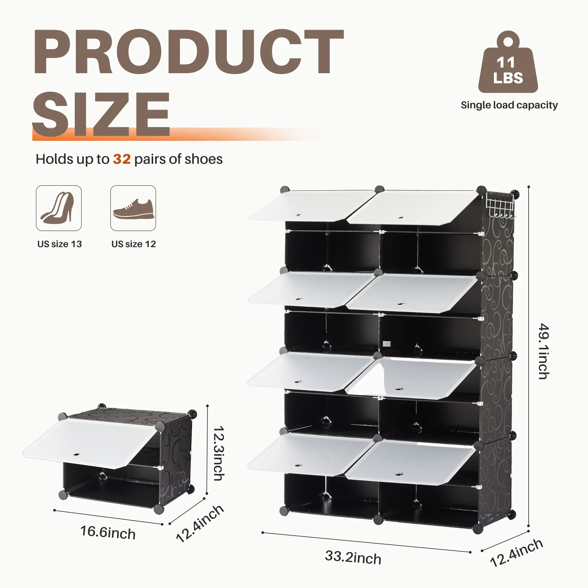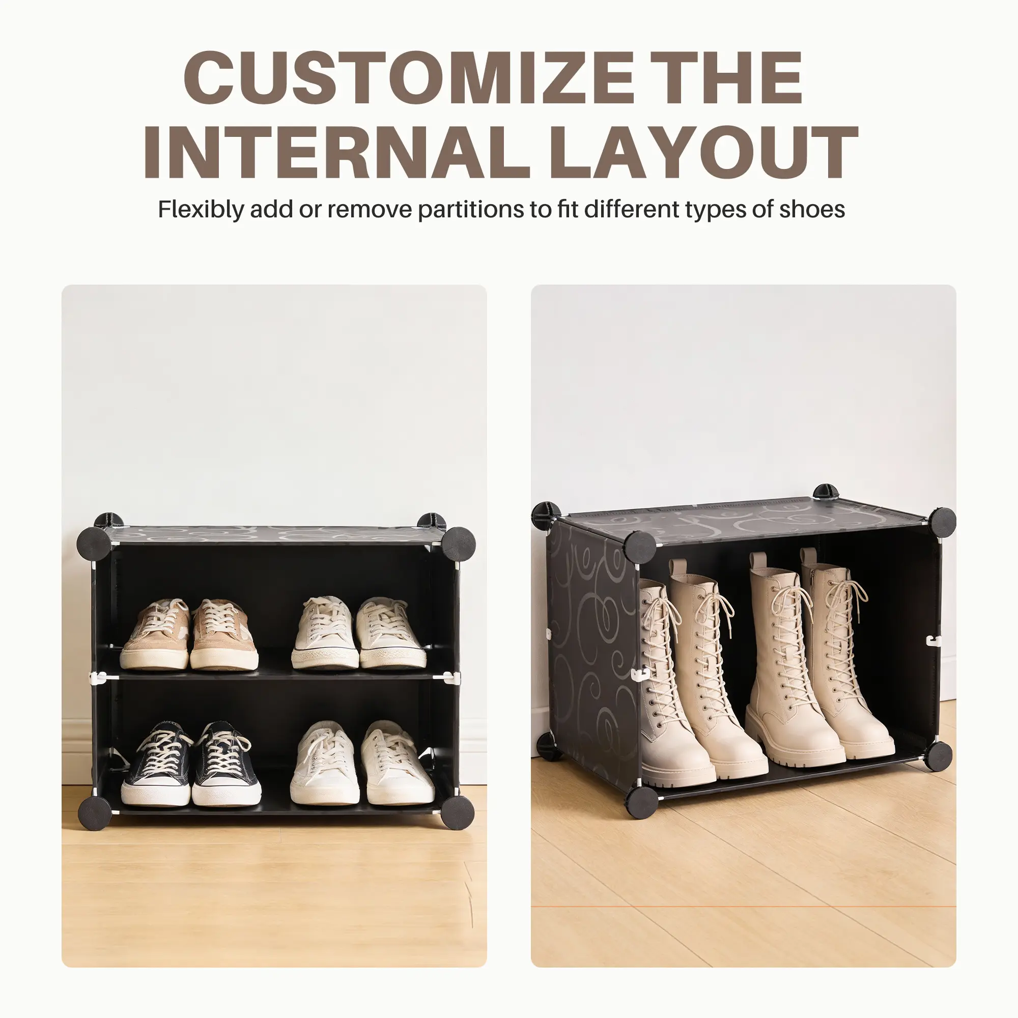 ·【Easy-Clean & Ventilated Design】Crafted from waterproof plastic, the shelves are incredibly easy to wipe clean with a damp cloth. The ventilated design promotes excellent air circulation, which helps prevent odors and keeps your shoes and the storage area fresh.