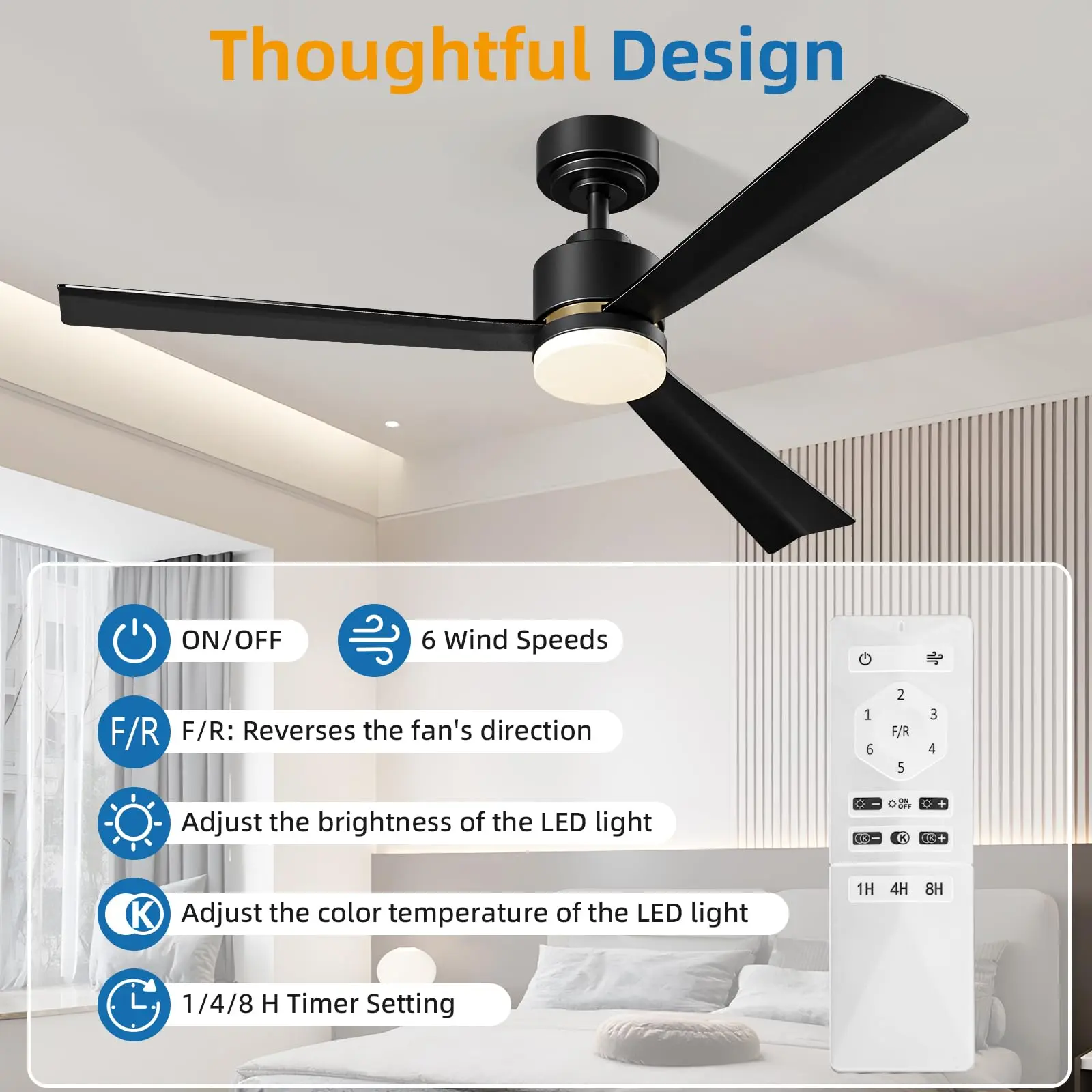 ·Free Control Your Ceiling Fans: All operations can be controlled by the remote controller, adjust the fan speed with 6 levels, select 3 different light color temperature, and supports timing (1/2/4/8 hour) sleep shutdown, on/off. The fan and light can be turned on separately