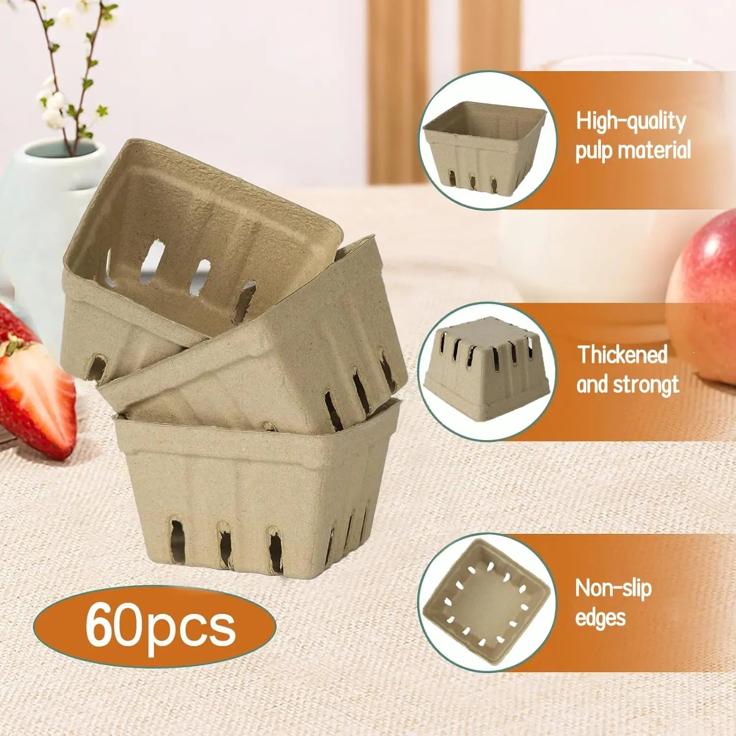 【 Choice】:Made from biodegradable pulp fiber, these berry baskets are a sustainable alternative to plastic containers, reducing while keeping your produce attractively displayed.