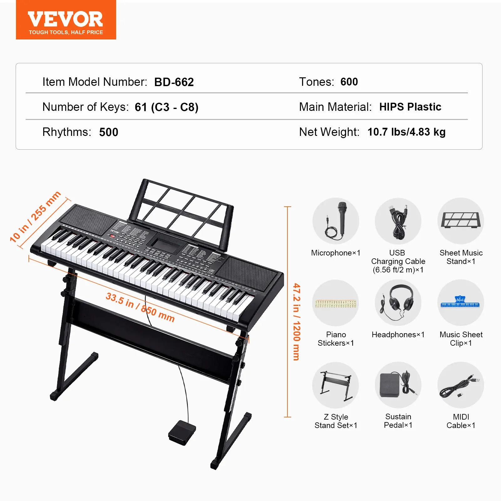 • 61-Key Digital Keyboard Piano: Discover the versatility of our 61-key keyboard piano, equipped with 600 tones, 500 rhythms, and 80 demo songs to inspire your musical creativity. The lighted keys guide finger placement and enhance learning, making it especially engaging for children and beginners. Spark creativity and interest with our piano!