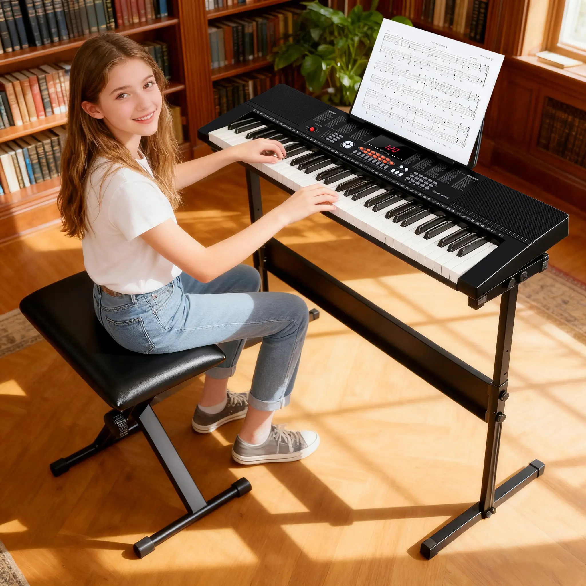 This comprehensive set includes a keyboard stand, music stand, an adjustable padded stool, and even a microphone, all securely packed in a sturdy box. It serves as a wonderful birthday, Christmas, or holiday gift for children, and is an ideal educational present for aspiring musicians of all ages.