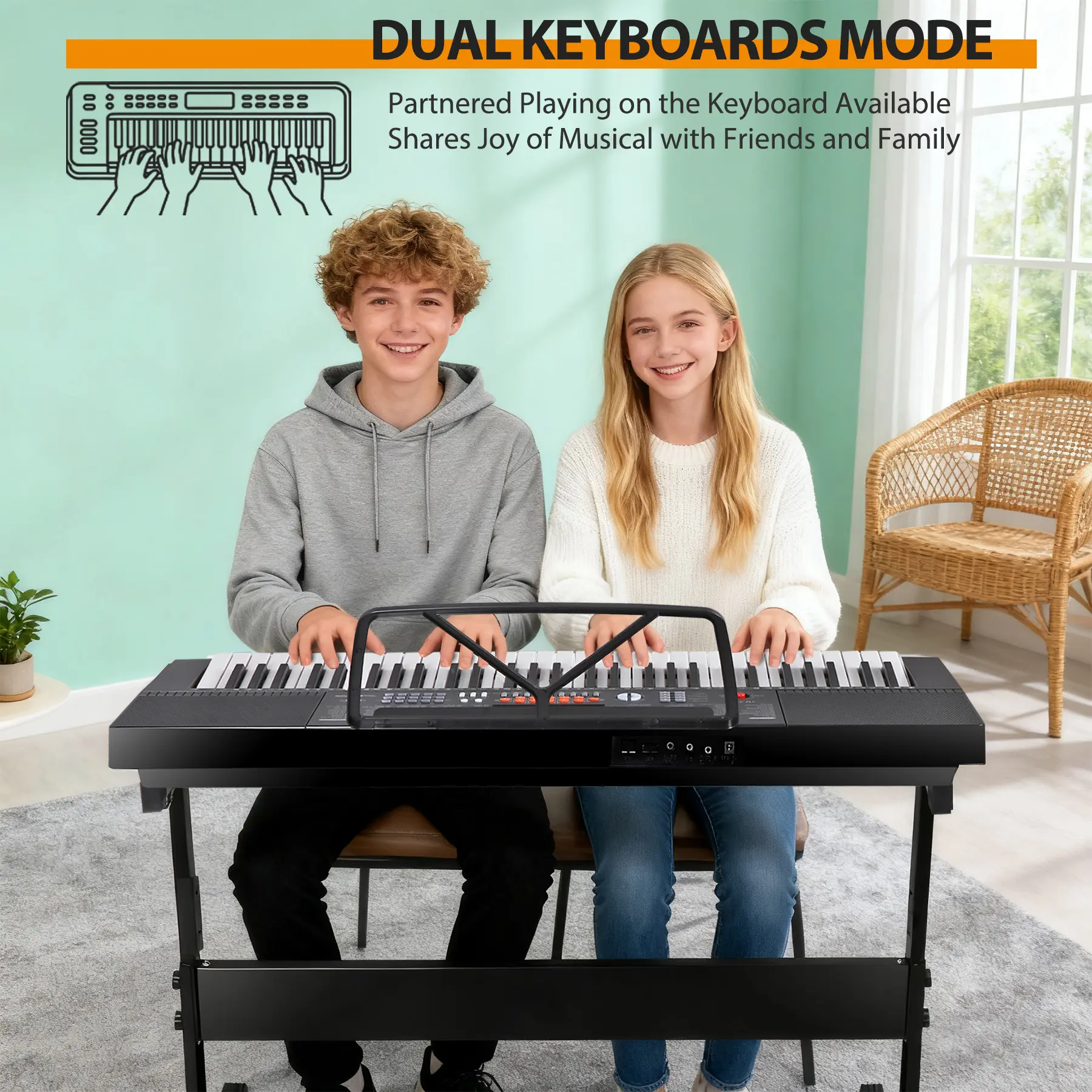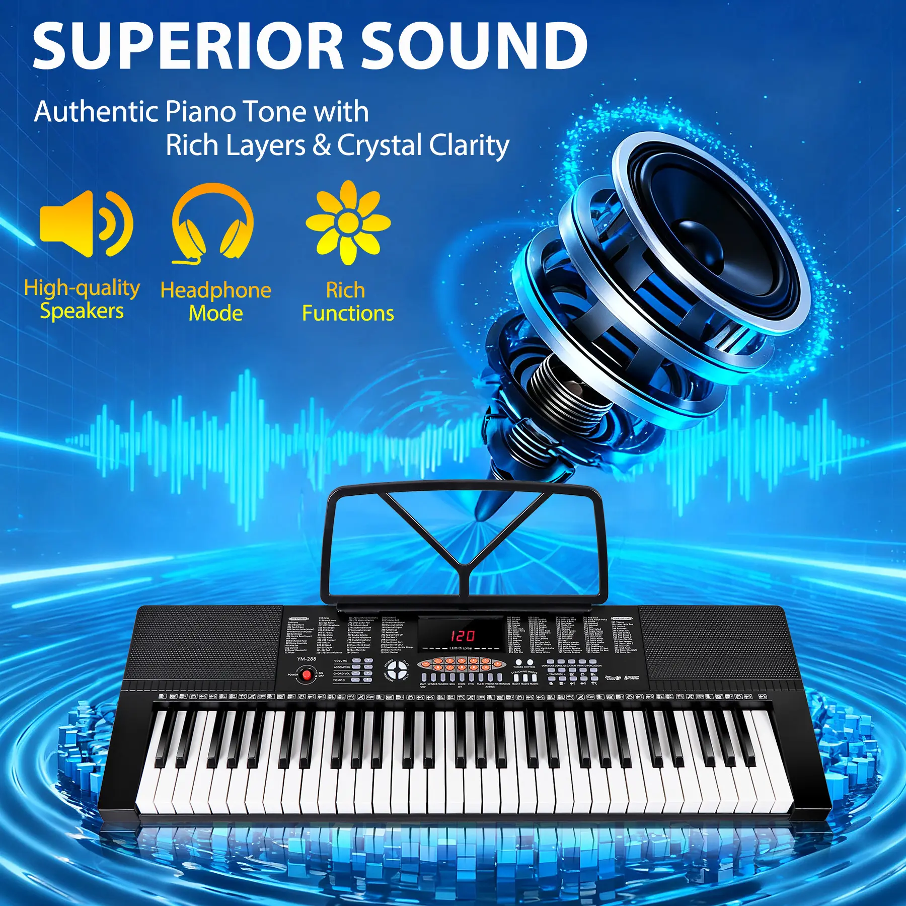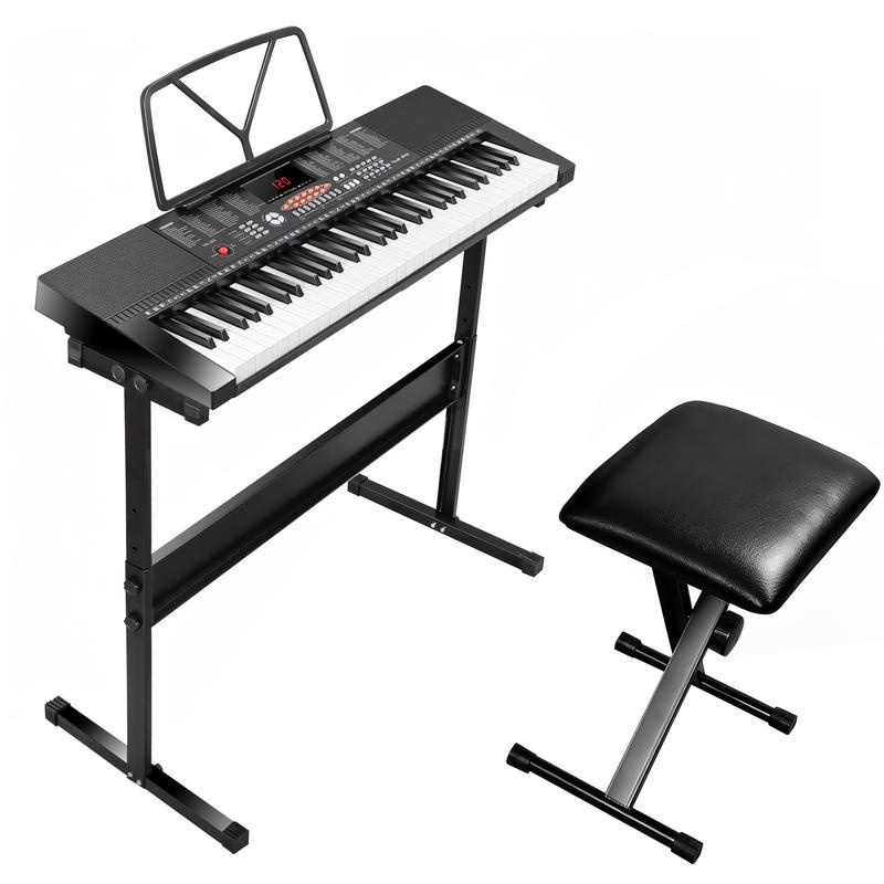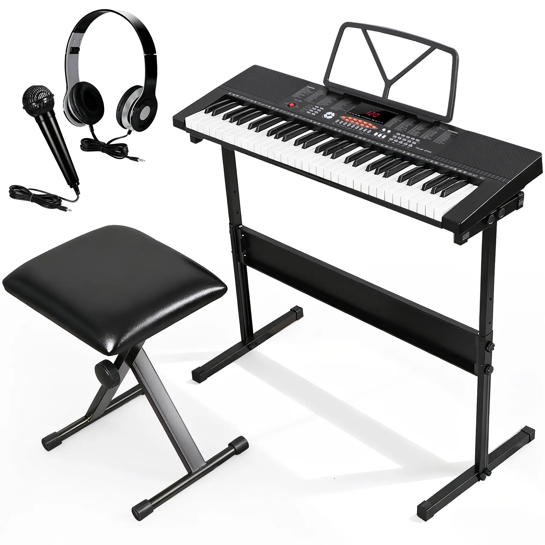 Complete Beginner's Bundle: This all-inclusive kit is perfect for beginners and players of all skill levels, offering everything needed to start playing right away. It includes the 61-key portable keyboard, a keyboard stand, music stand, padded stool, microphone, and more, all in a sturdy, convenient package.