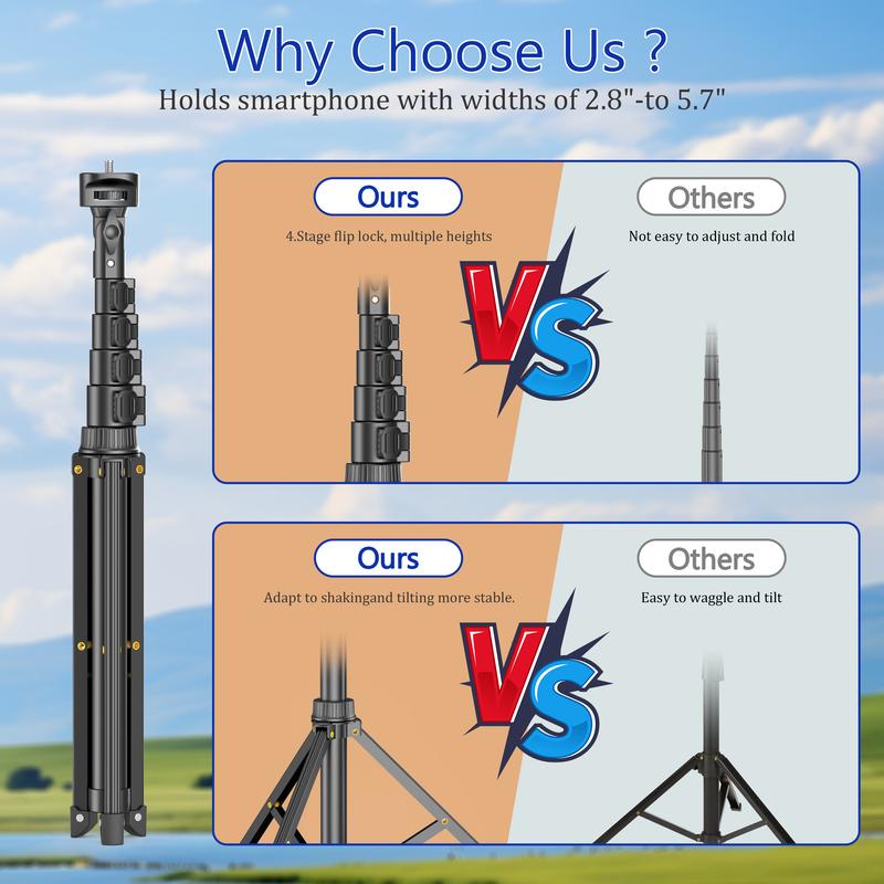With a height that extends up to 62 inches and a flexible head that rotates 360°, you can frame your shots just right—portrait or landscape, close-up or wide. The quick flip lock makes adjusting a breeze, so you spend less time fiddling and more time creating. Plus, the wireless remote lets you snap photos or start recording from up to 33 feet away—perfect for hands-free control during solo shoots or group pics.