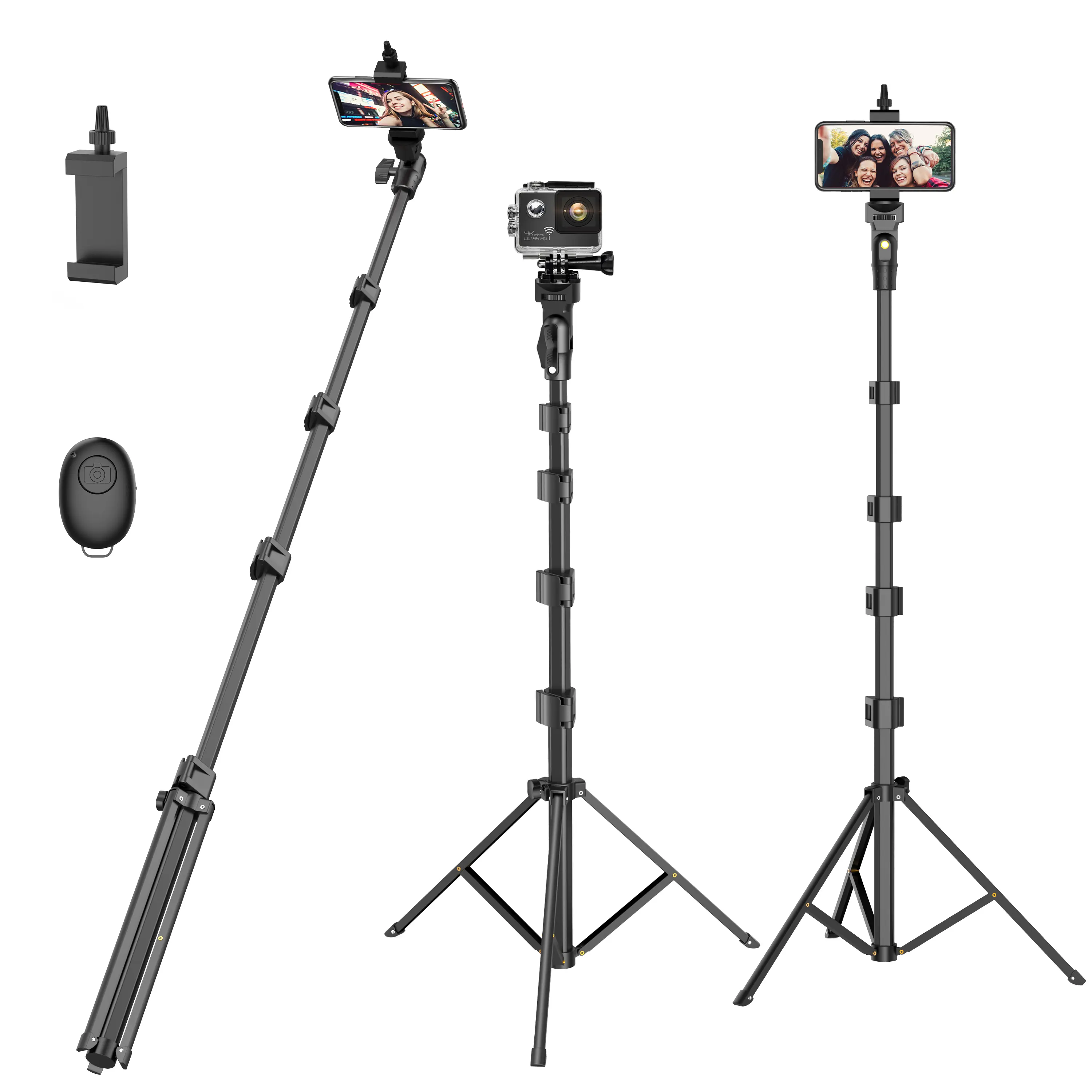 Ever struggle to get the perfect group selfie or steady vlog shot? This all-in-one 62" portable selfie stick tripod is your new best friend. Whether you’re traveling, vlogging, or just capturing memories, it transforms easily from a selfie stick to a tripod to fit your shooting style. With its extendable height up to 62 inches, you can snap photos from cool angles or get everyone in the frame without stretching awkwardly. The universal 360° rotatable phone holder fits smartphones from 2.3" to 3.5" wide plus action cameras and webcams, so it’s super versatile. Plus, the Bluetooth remote lets you take hands-free photos from up to 33 feet away—perfect for group shots or solo creators. The quick flip lock system makes height adjustments a breeze, and the sturdy aluminum build keeps your device steady, even on uneven surfaces. Inside the box, you’ll find the tripod, phone holder, camera adapter, and a wireless remote control, so you’re ready to shoot right out of the bag. Ready to upgrade your photo game? Grab this selfie stick tripod and start capturing your best moments with ease and style!