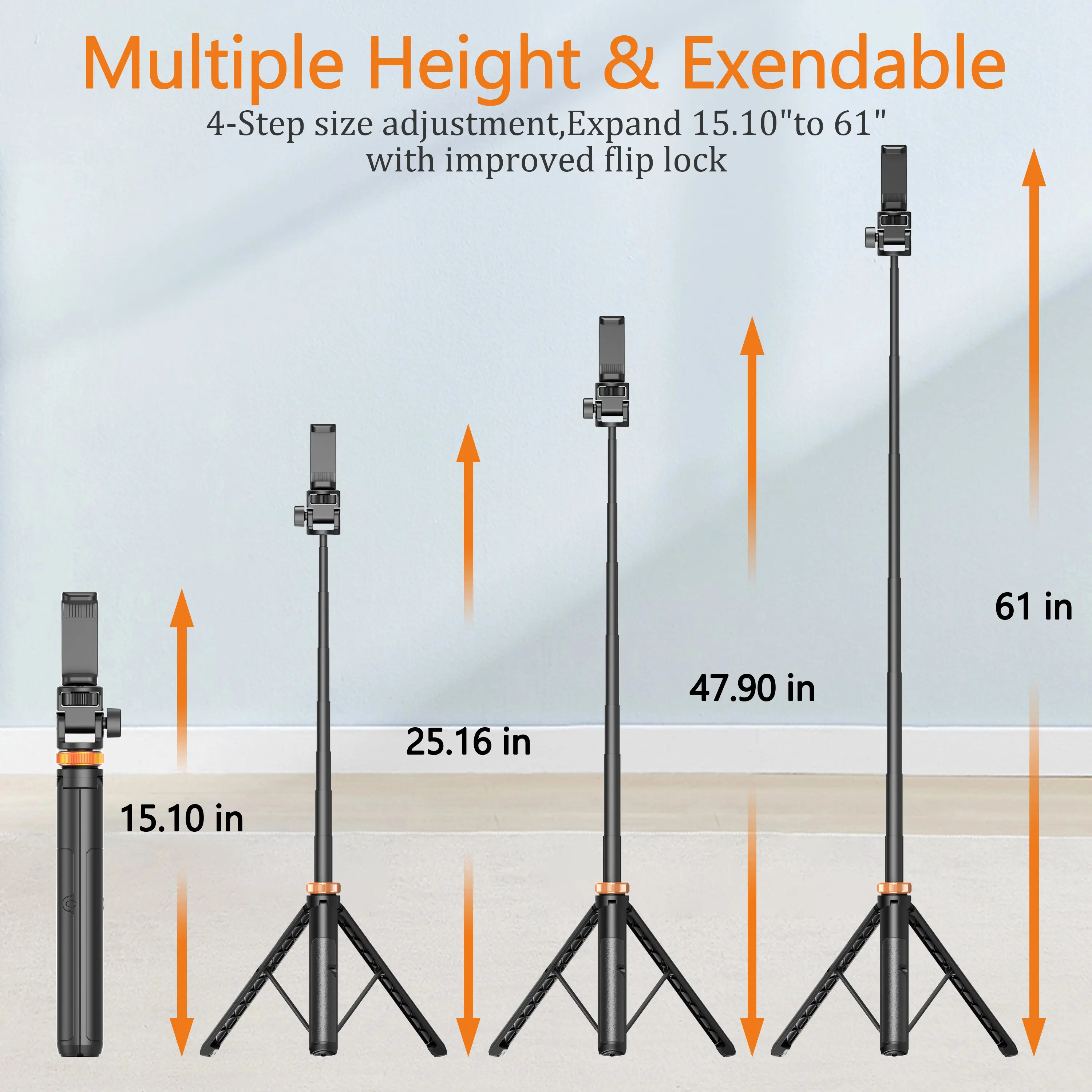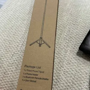 I LOVE my tripod. It’s eye level to me and I’m 5’3 if you’re wondering. Easy to extend and the clicker has a on and off button. Easy to find in Bluetooth settings. Many angles as well. The 1st pic is the clicker of course. It has a string to attach so it’s easy to hold / and find.