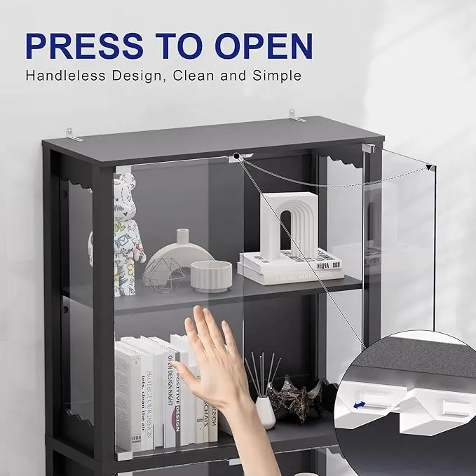 Open doors effortlessly with a gentle press—no handles needed. Combines 0.2" tempered glass and durable hinges for minimalist elegance and reduced collision risk.