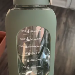 Fantastic design holds my daily water needed for the day. I love that I can measure my drinking progress too using the measurements on the side of the bottle.