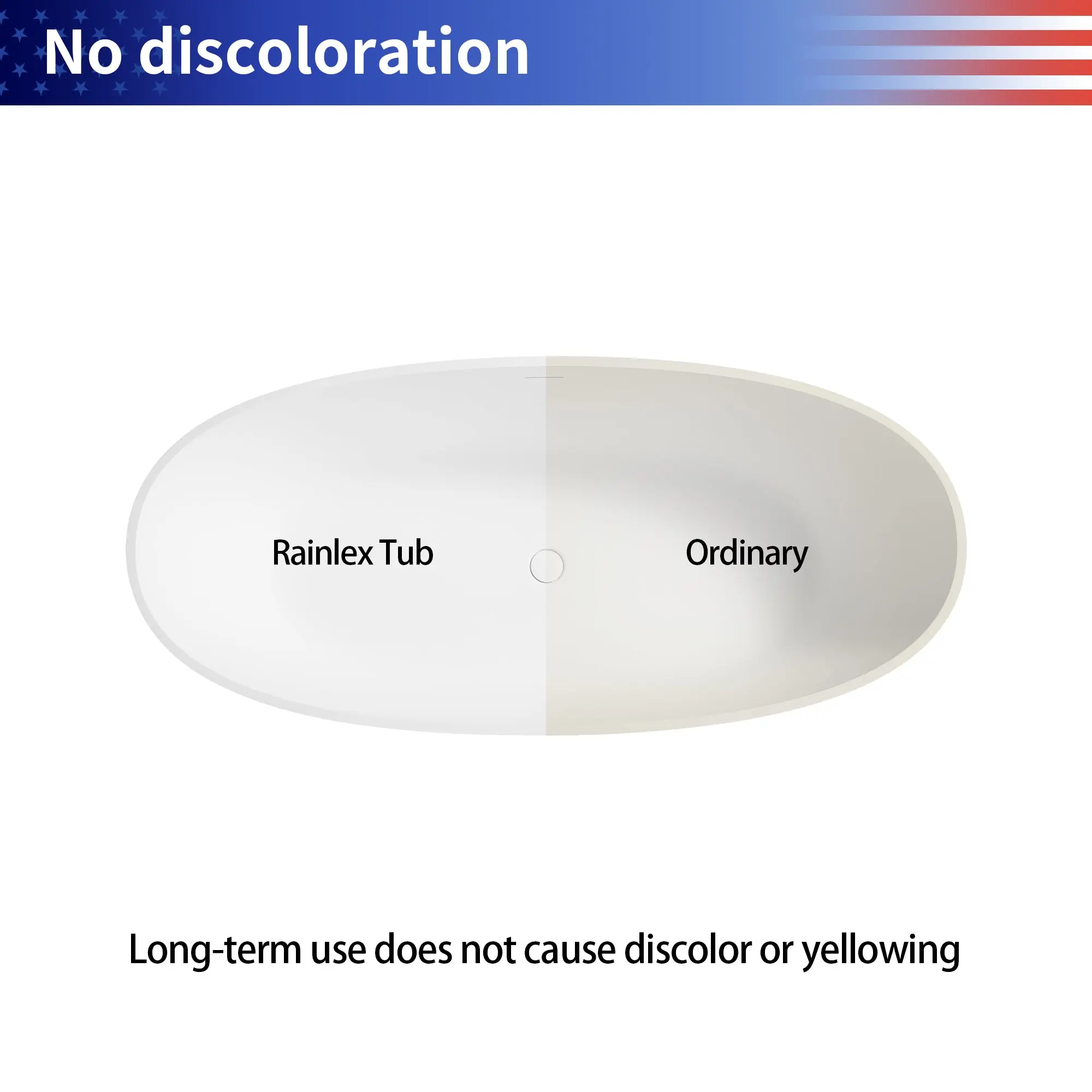 Rainlex solid surface bathtubs are made of environmentally friendly and non-toxic material. The bathtub with a matte white finish is simple and elegant. This luxurious bathtub has a solid, scratch-resistant surface. The smooth surface of solid surface bathtubs is warm to the touch and boasts outstanding heat insulation, keeping the water warm for the size of your bath. If you are looking for the perfect modern bathtub at an excellent price, this should be at the top of your list.