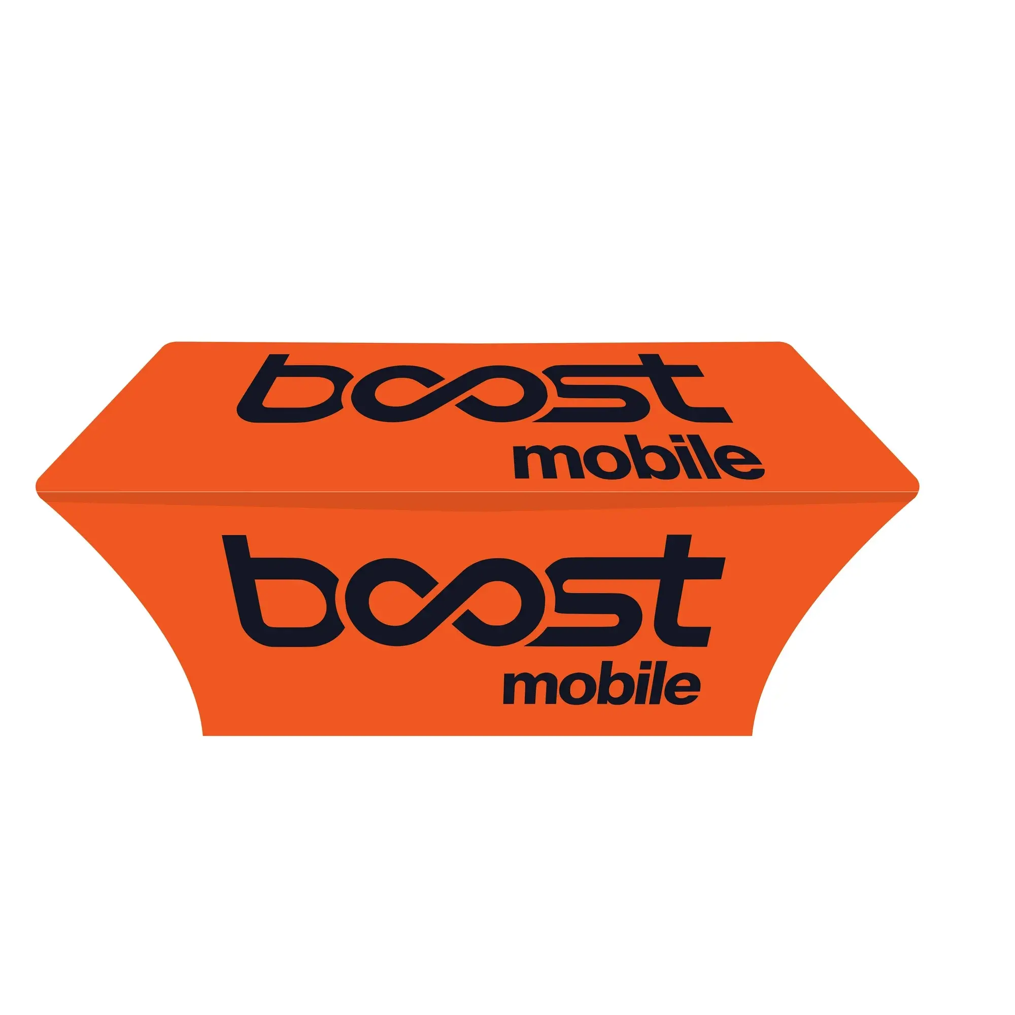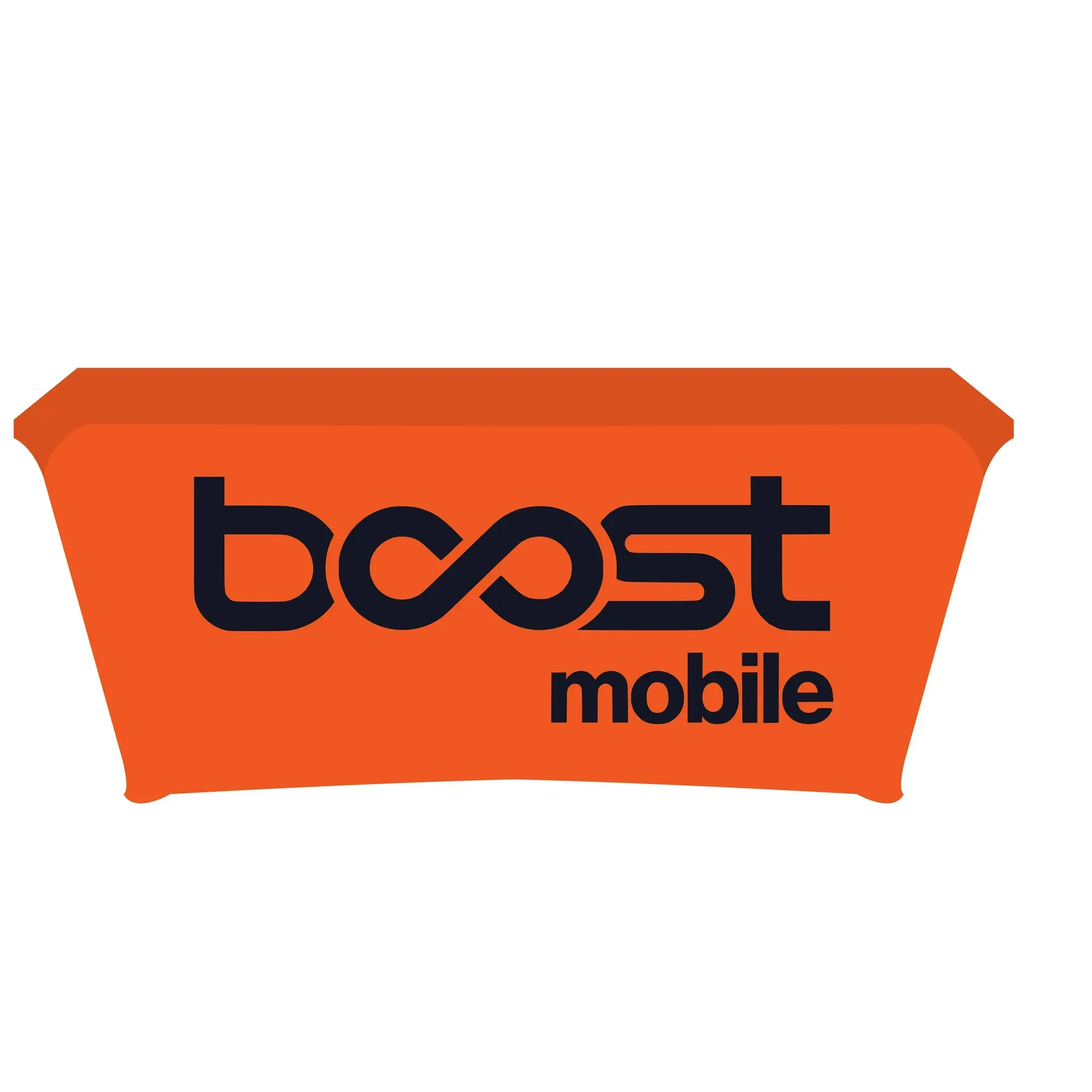 Make your setup stand out with the 6FT Boost Mobile Promotional Table Cloth – a sleek and professional branding solution designed for retailers, events, and mobile marketing activations. This high-quality polyester table cover features the Boost Mobile logo printed on the front, top, and both sides, giving your booth full visual impact from every angle.