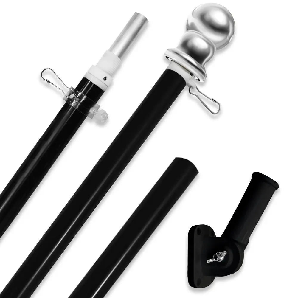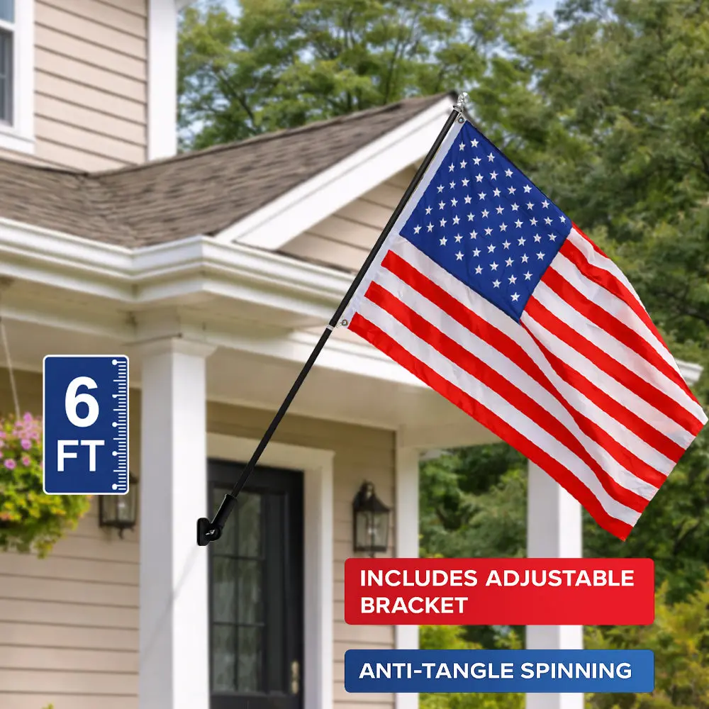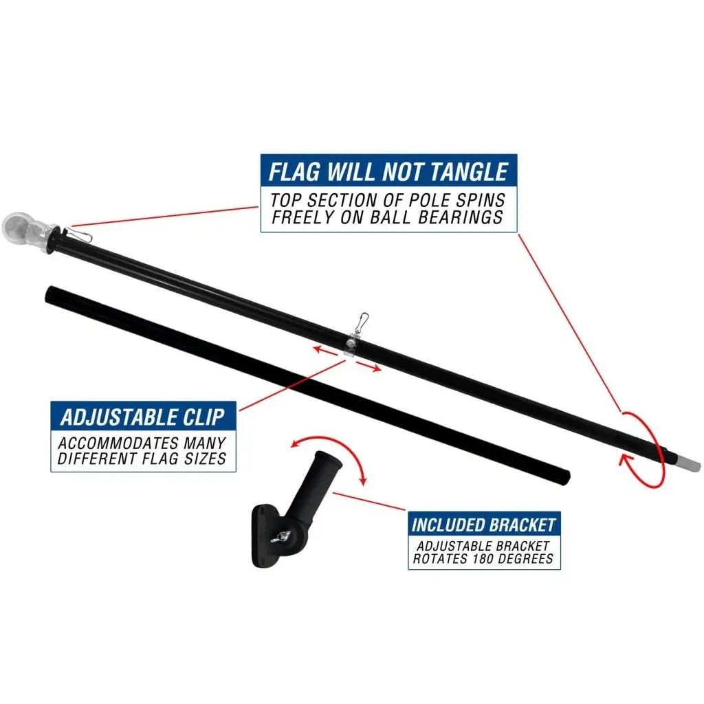 6ft Spinning Stabilizer Flag Pole & Adjustable Bracket Kit (Black)