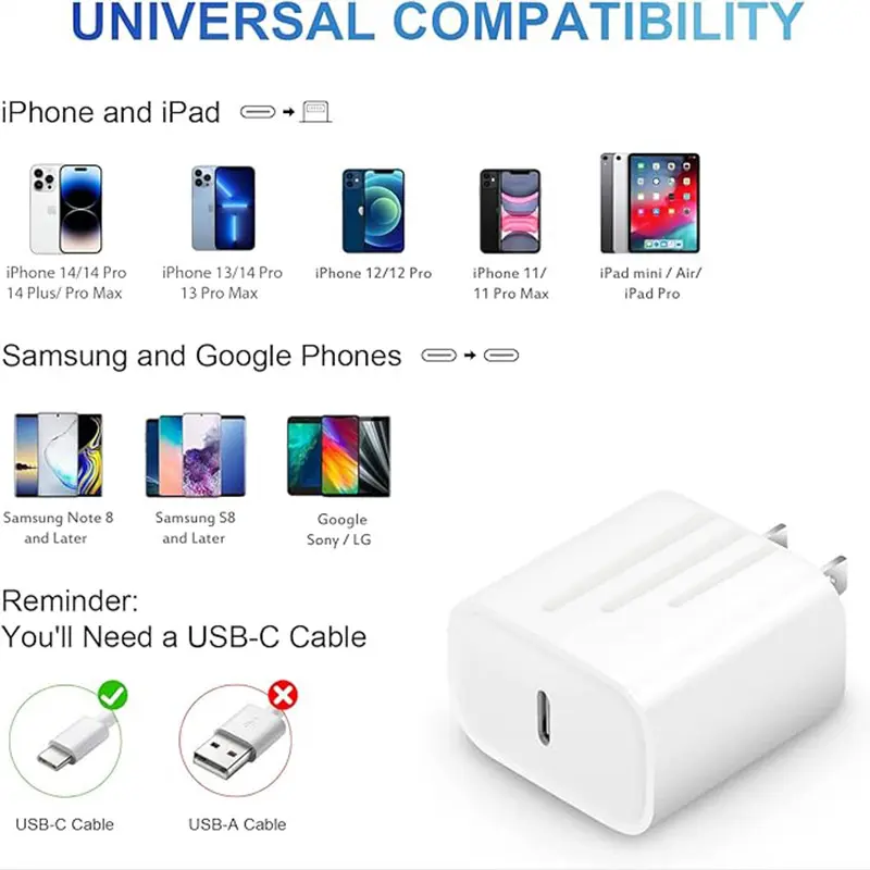 Tired of waiting around for your devices to charge? Our 6FT Super Fast Charging 4-Pack Type-C Wall Charger Block is here to speed up your day. Whether you’re powering up your iPhone 14, 13, 12, or AirPods Pro, these chargers deliver lightning-fast juice with safety features like short-circuit and overheat protection to keep things cool and secure. Each pack includes four wall charger blocks and four 6-foot USB-C to Lightning cables, perfect for charging multiple devices at home, work, or on the go. The versatile compatibility means one charger fits all your Lightning devices, so you can ditch the clutter and stay connected effortlessly. Plus, with support for 100V-240V input, these chargers are travel-friendly for your next adventure. Ready to cut the cord chaos and power up smarter? Grab this 4-pack and keep your devices charged, powered, and ready for whatever life throws your way.