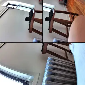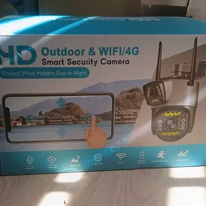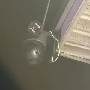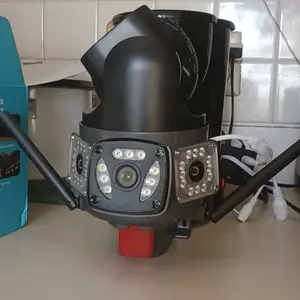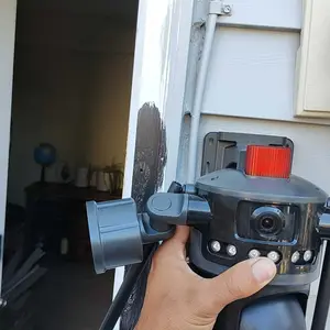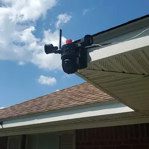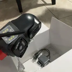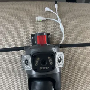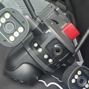 Dual-lens camera with a gun and ball function, monitors two different areas simultaneously, with the app displaying three images.