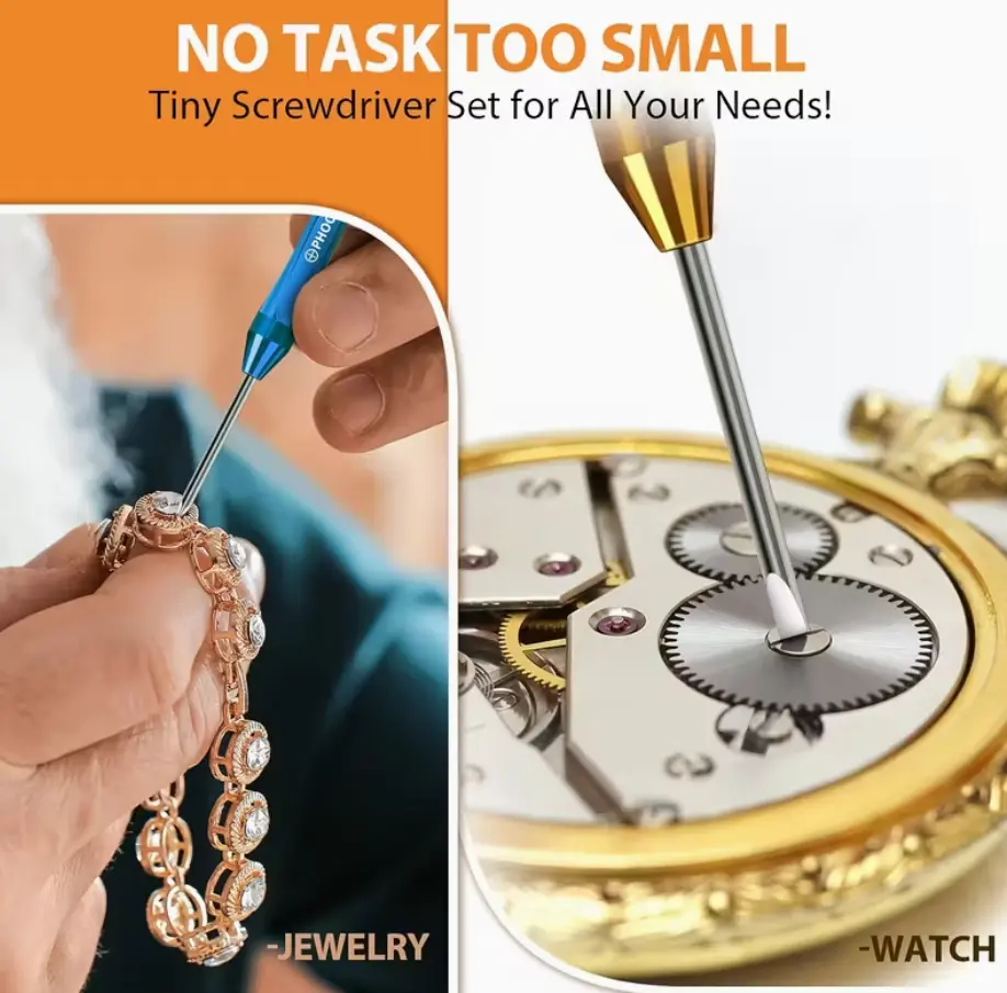 Upgrade your toolkit with this 6PC Magnetic Small Screwdriver Set. Perfect for precision tasks, it includes flathead and Phillips micro heads. Ideal for eyeglasses, watches, electronics, and computer repairs. This CRV set is a must-have for men. 🕒