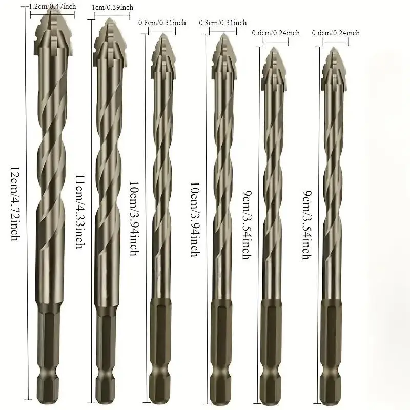 6pcs Carbide Sawtooth Offset Drill Bit Set, 4-Teeth Hex Shank for Ceramic Tile, Cast Iron, Concrete, Dry Drilling Tool Kit