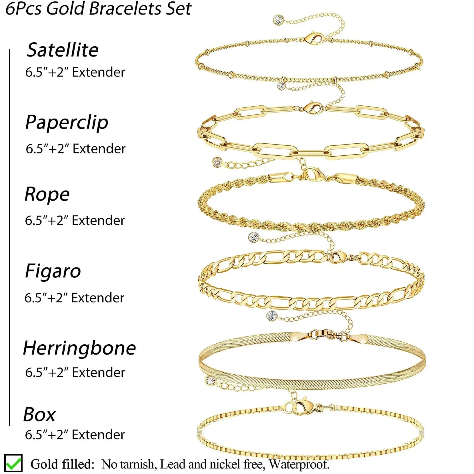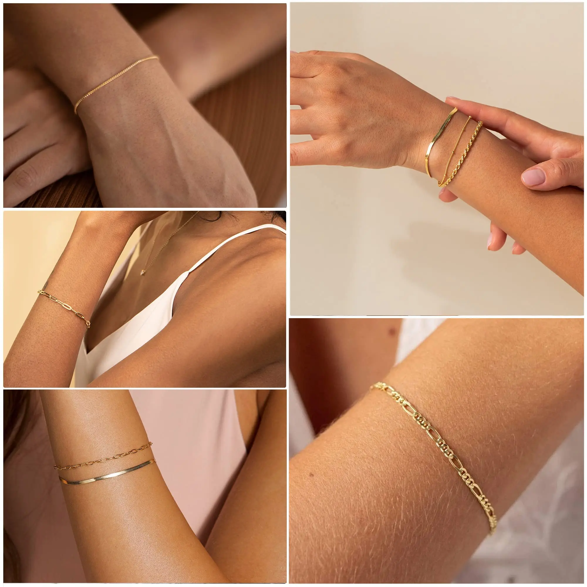 ·Variety of Styles: The set includes Satellite, Figaro, Box Chain, Paperclip, and Rope bracelets. Perfect for layering or solo wear, adding elegance to any outfit. 🌟