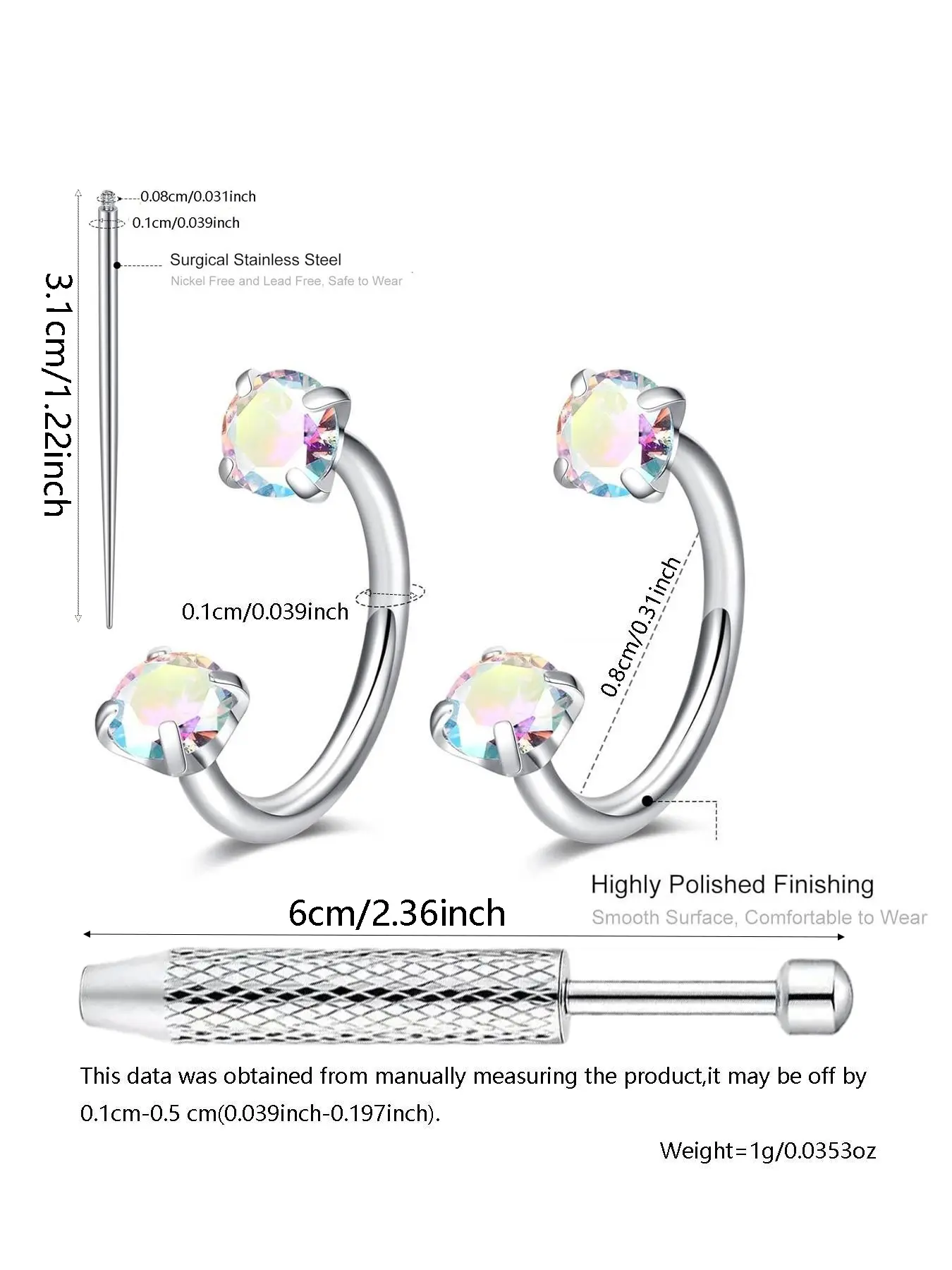 they’re super cute, the only thing is my nose is pretty small so it’s a little big on me. also my nose hole was too small to put it in (since i got the 18 gauge) but it comes with a stretcher tool so that it makes it easier to put in!!! love so much!!