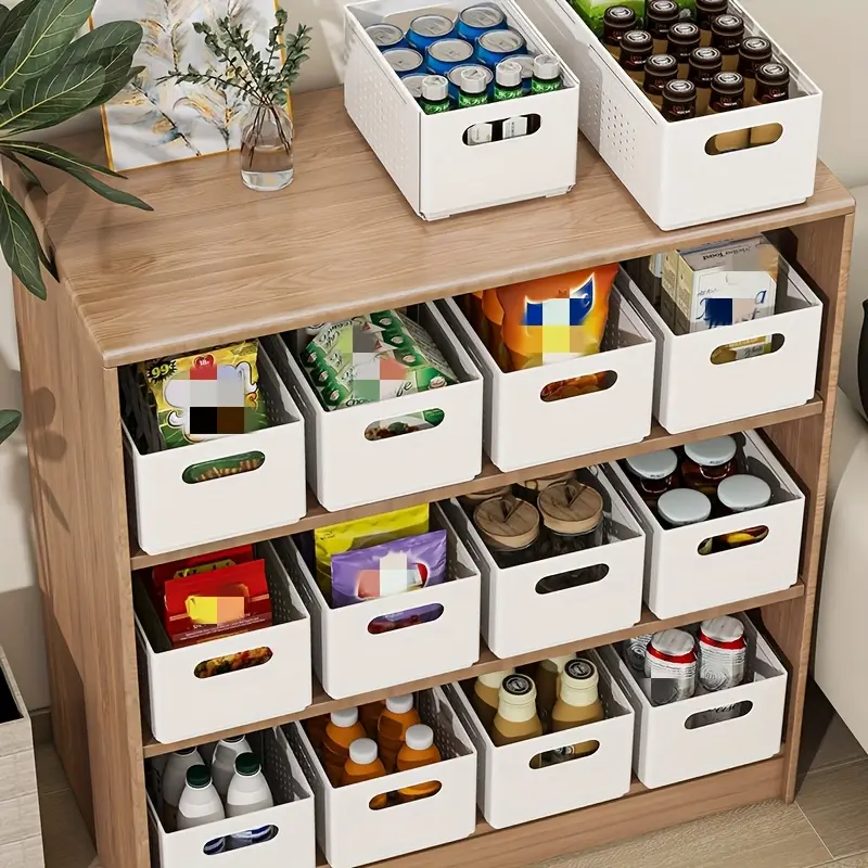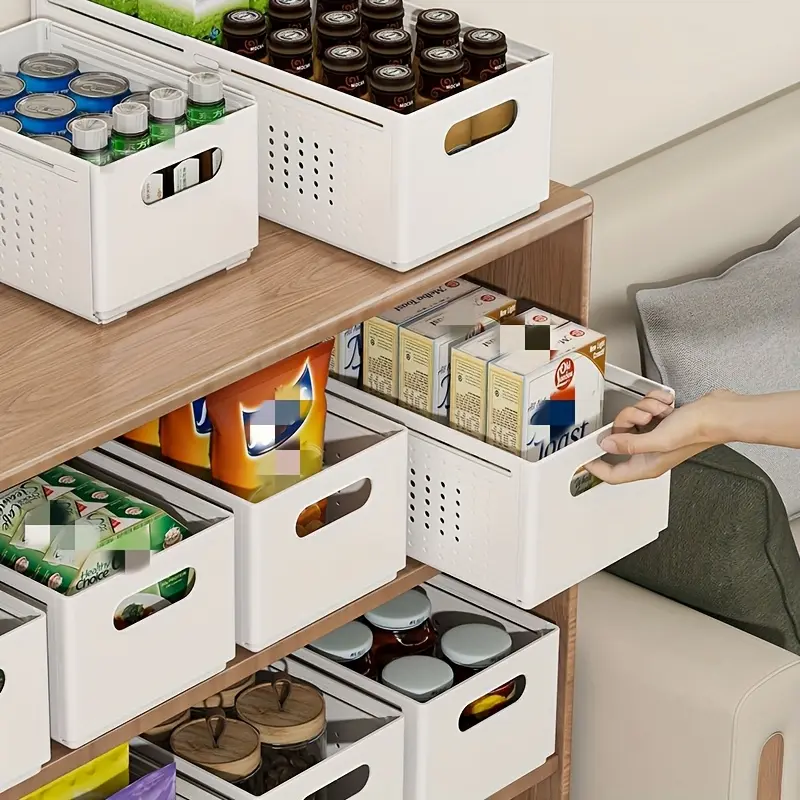 Equipped with small ventilation holes on the sides, these bins allow air circulation to prevent moisture buildup, odors, and mold. Ideal for storing fresh produce, snacks, toiletries, or dry goods that need airflow.