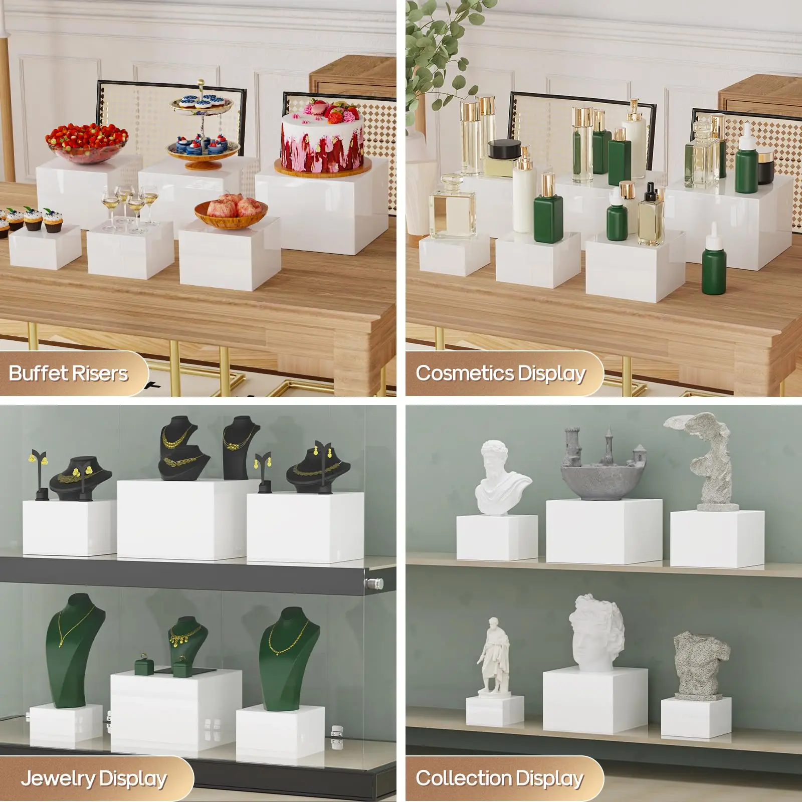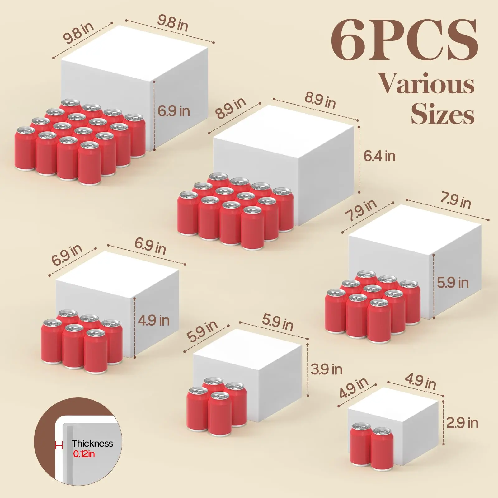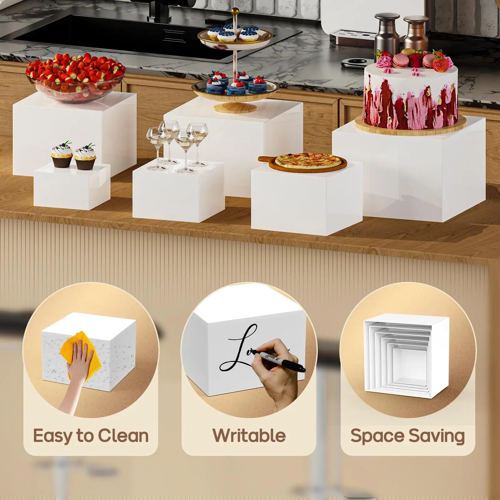 6 PCS Buffet Risers, Large Food Risers for Buffet Table, Display Stand Shelf for Party, Catering, Jewelry & Collectibles, White Plastic Nesting Boxes for Food Display