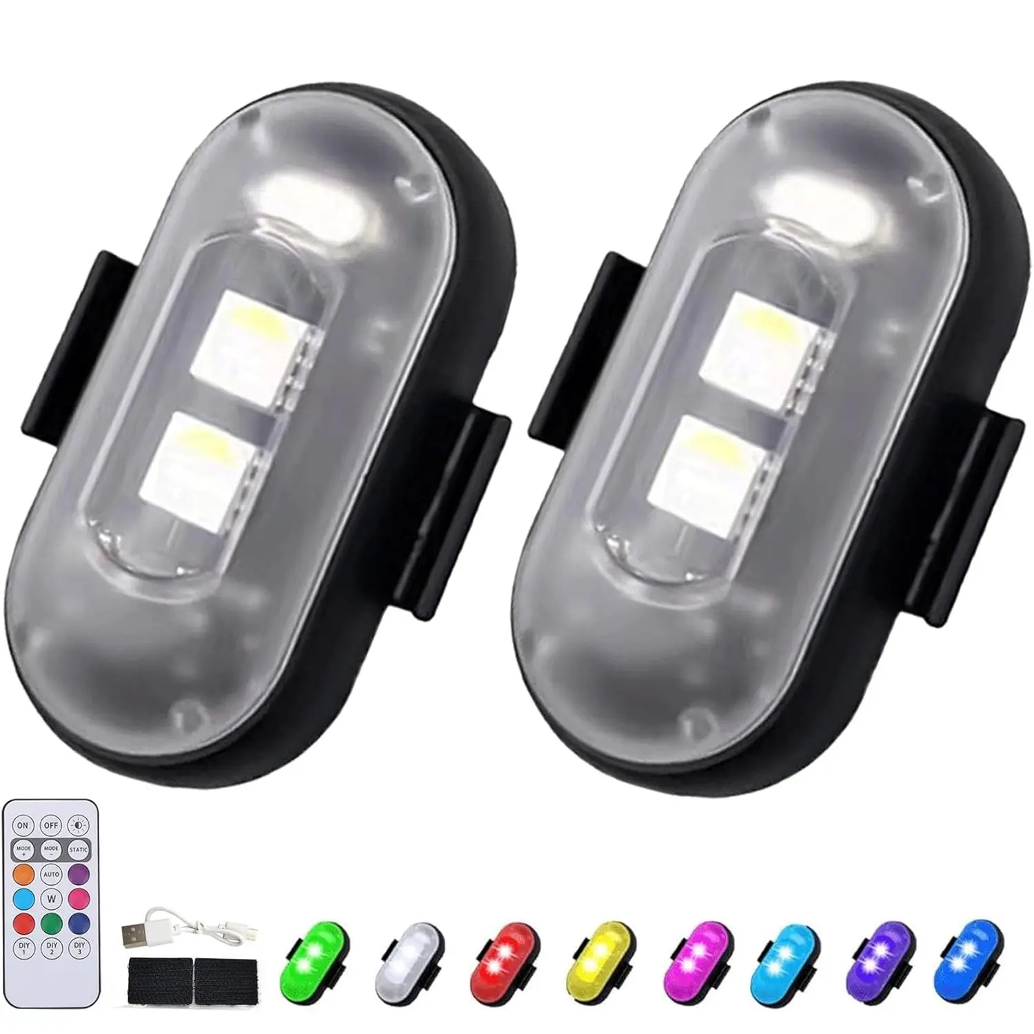【LED Lights & USB Rechargeable】- These LED Aircraft Lights are perfect for vehicles like drones, motorcycles and boats, high brightness ensures visibility, especially at night. Fully rechargeable via USB in just 1 hour. When fully charged, they can last over 20 to 50 hours in slow mode and 3 hours in the most power hungry modes such as pink and ice blue in static mode