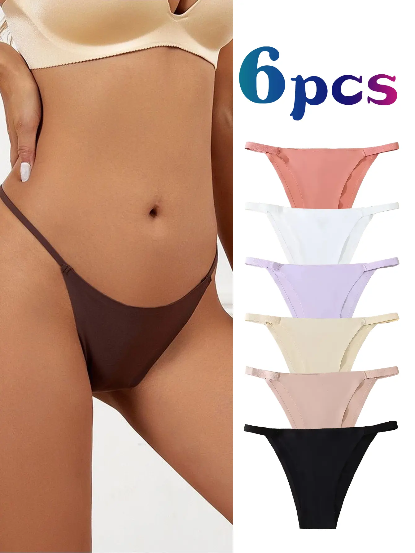 6pcs Of SeamlessWomen'SUnderwear, Fan-shaped, SeamlessTechnology.The Fabric ls Light AndBreathable, Suitable ForVariousCombinations And ShowsExguisiteness.
