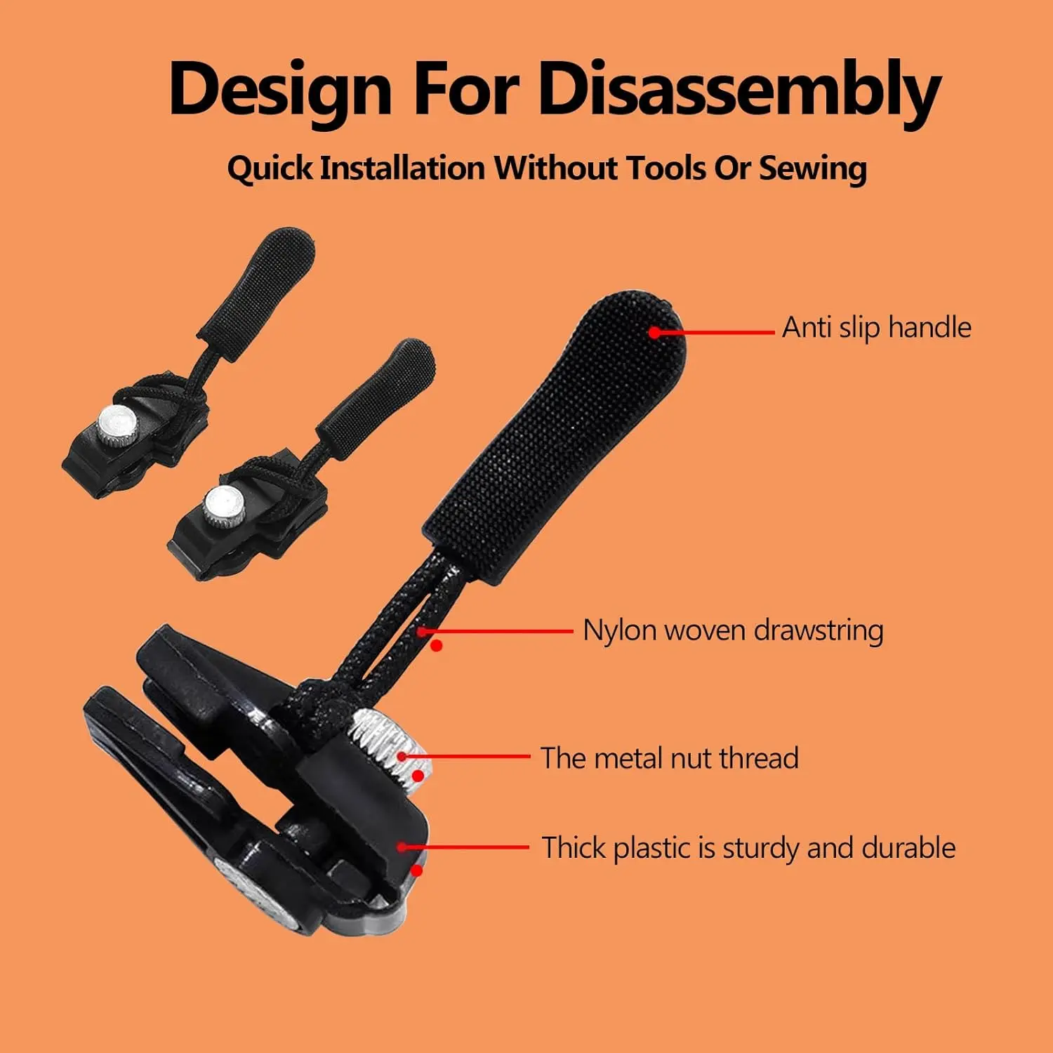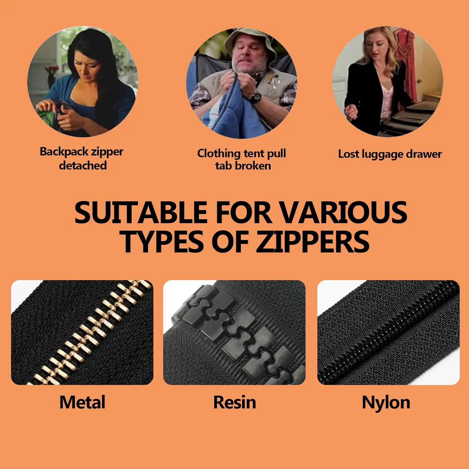 ·Package Combination: Our zipper fix set includes 2 small universal zippers, 2 medium universal zippers, 2 large universal zippers, 6 zipper cords, and 6 thin hook zipper heads. Zipper fixer allows you to no longer worry about not finding the right tools.