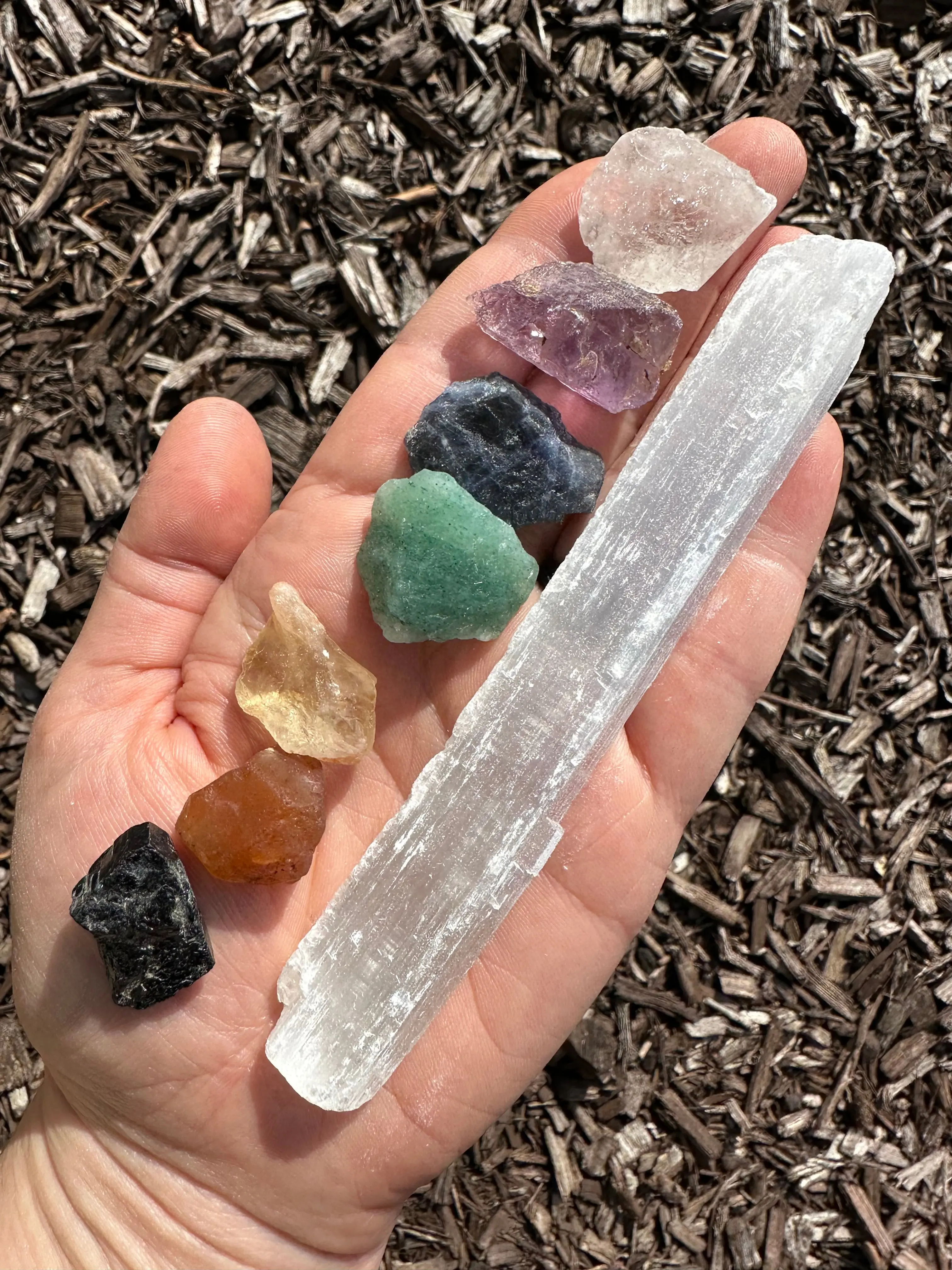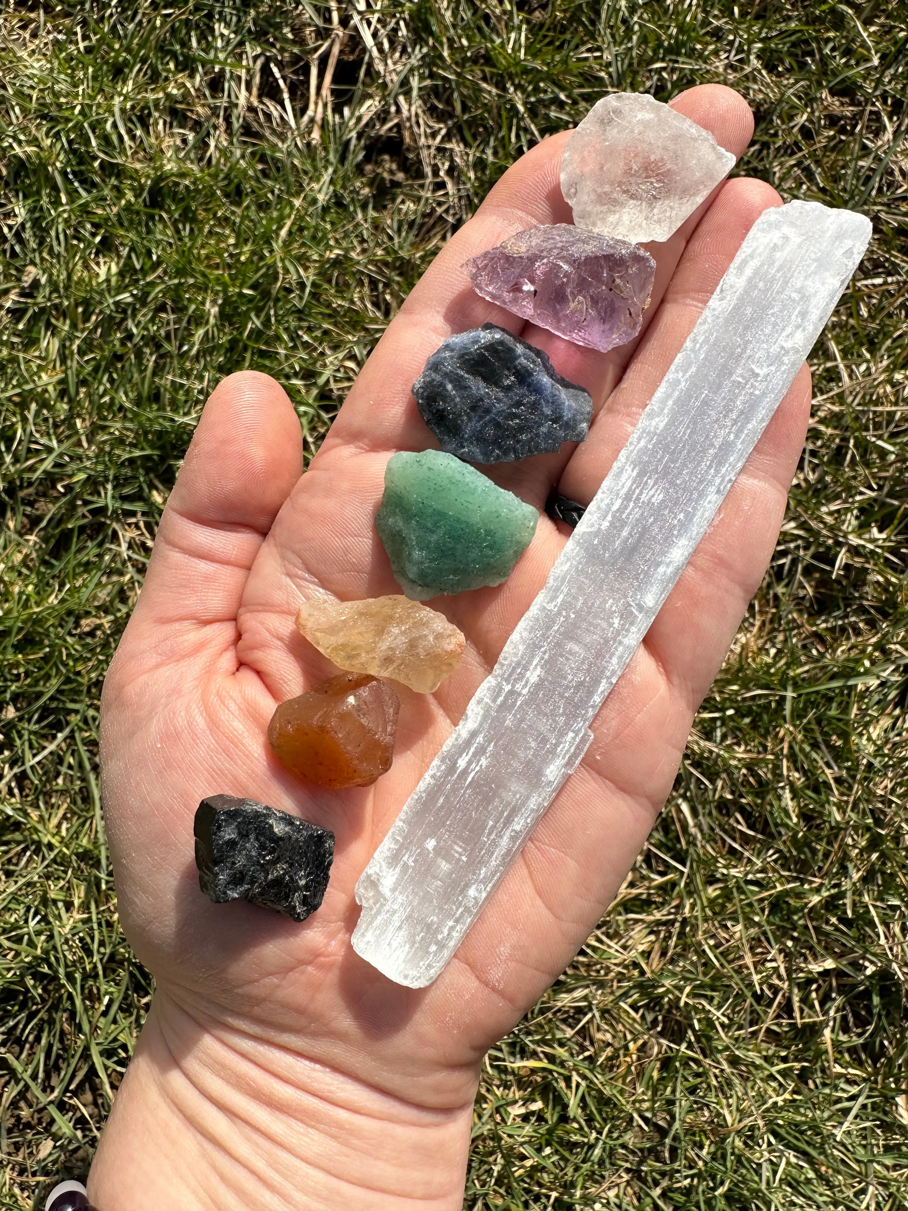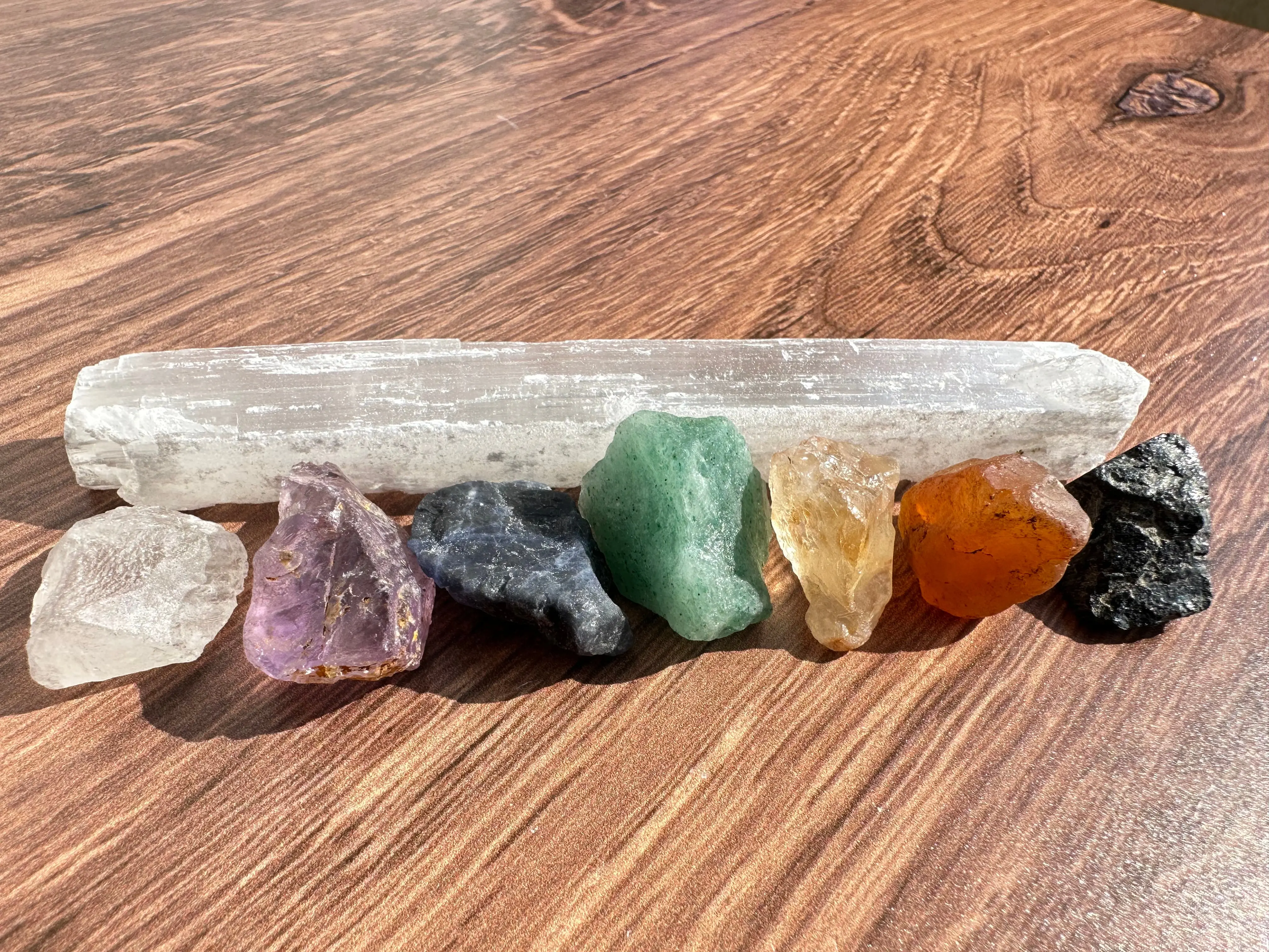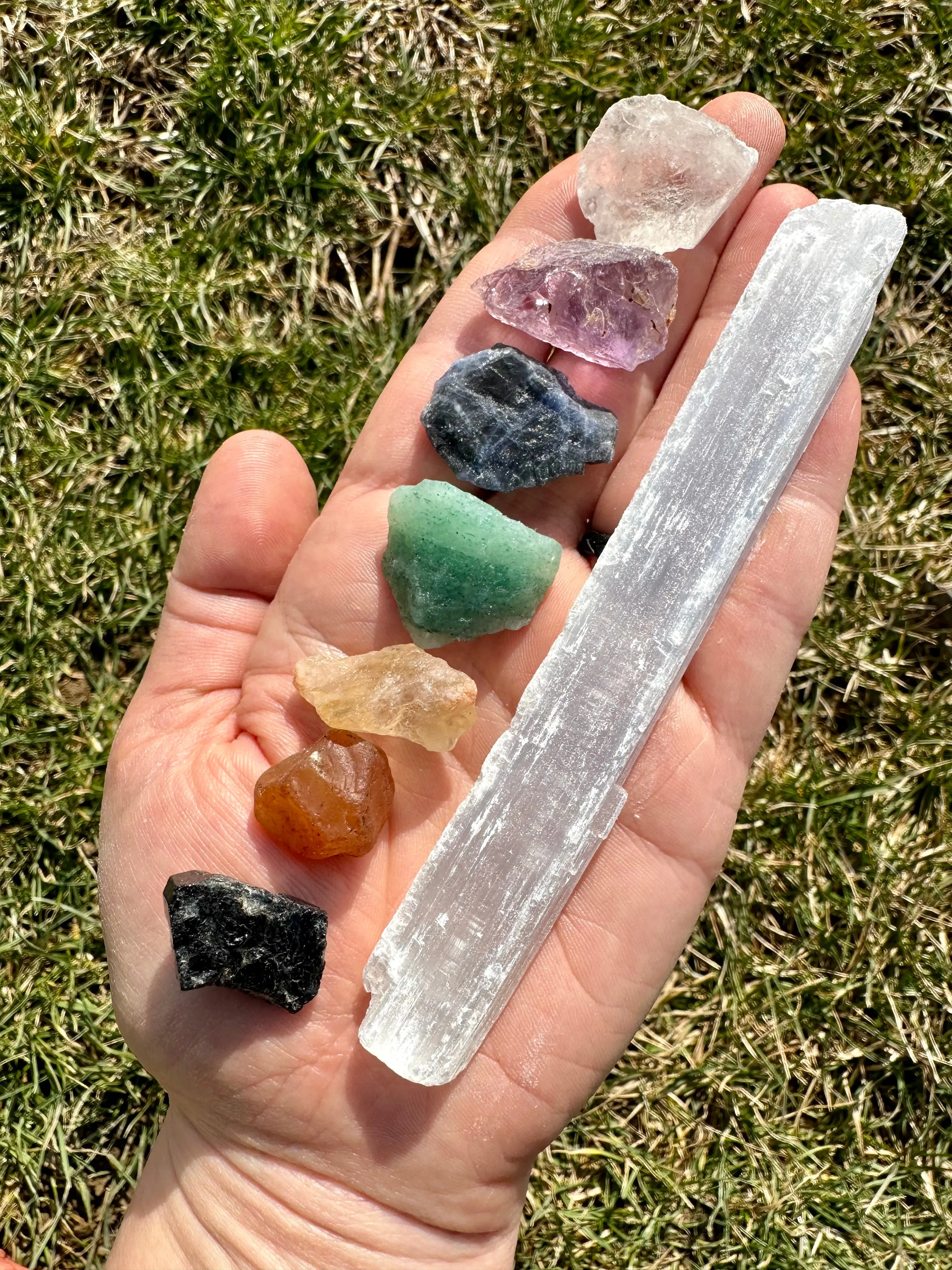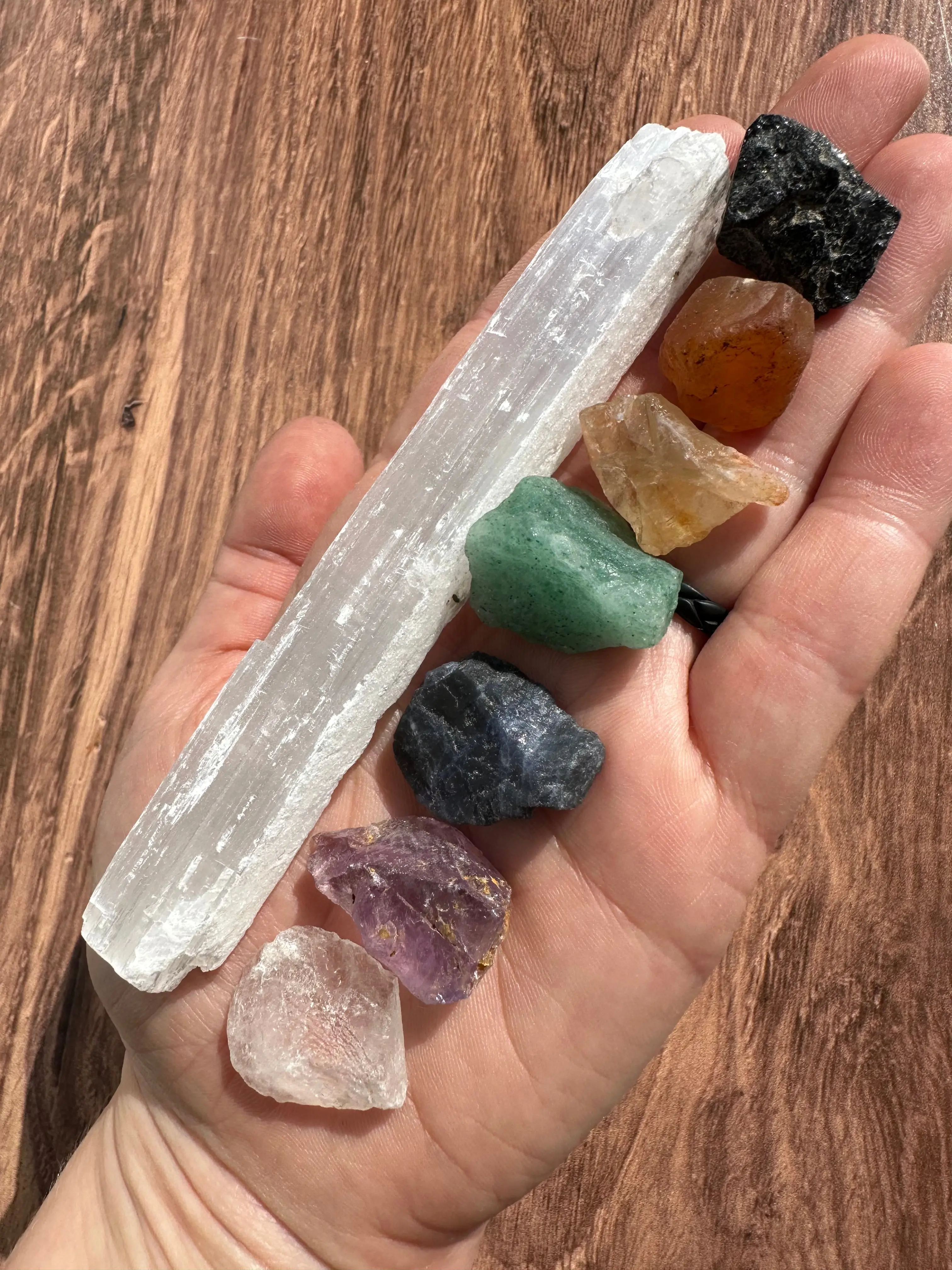 ·Crystals & Stones: Black Tourmaline, Carnelian, Citrine, Green Aventurine, Sodalite, Amethyst, Clear Quartz, Selenite