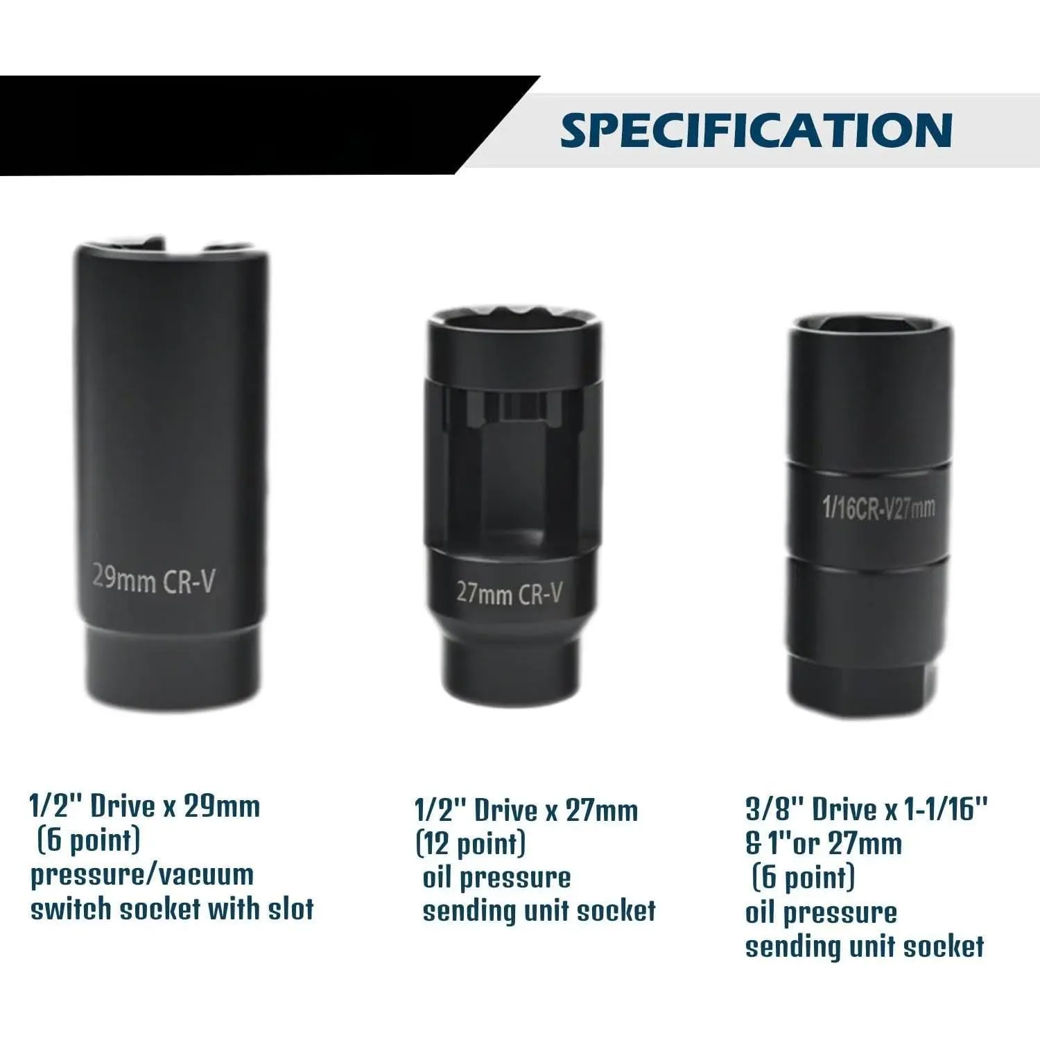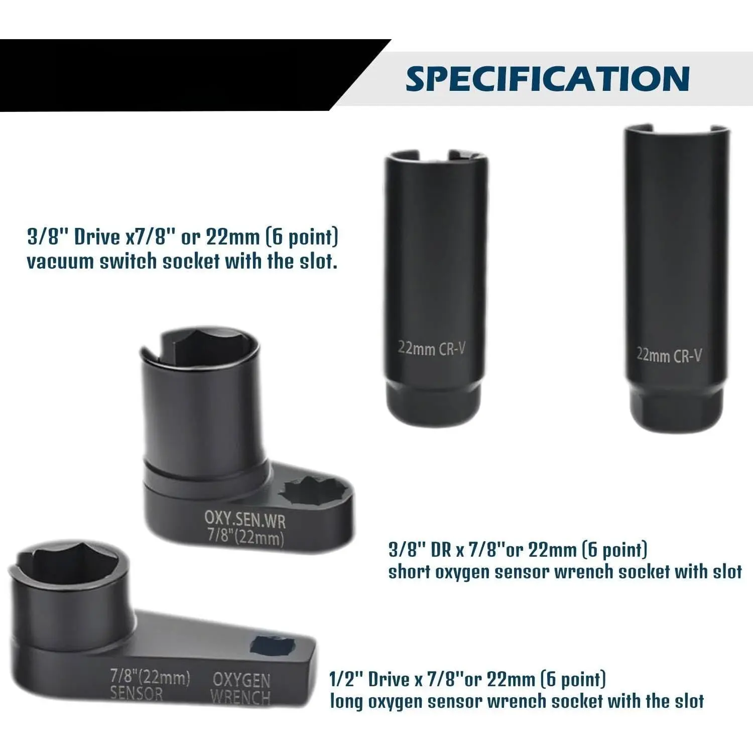 Materials: Constructed of heat treated chrome vanadium steel, the sensor removal set is built for strength, durability, and longevity; Each 02 sensor socket is coated with a black oxide finish to provide resistance to rust and