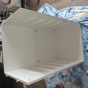 Was going ok till we found out the dowl holes are drilled to much and broke the outer layer on the top and one of the drawers when tapping them in. filled them with wood filler let them sit overnight. The rest of them went fine. Little disappointed. there is a dowel hole problem.