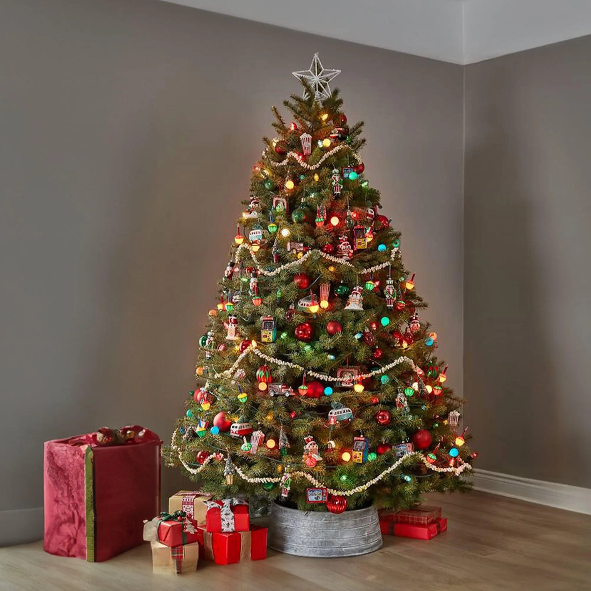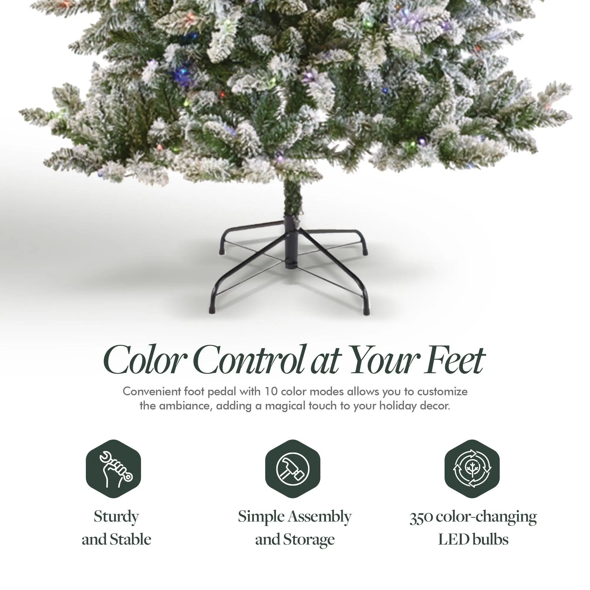 Celebrate the holidays with the NOMA 7-Foot Prelit Cypress Artificial Christmas Tree. Featuring 988 tips, it's perfect for displaying ornaments and comes pre-lit with 350 color-changing LED bulbs controlled by a foot pedal with 10 color modes. Easy to assemble, it includes a durable metal stand and is designed for long-lasting use, bringing festive cheer for years to come.