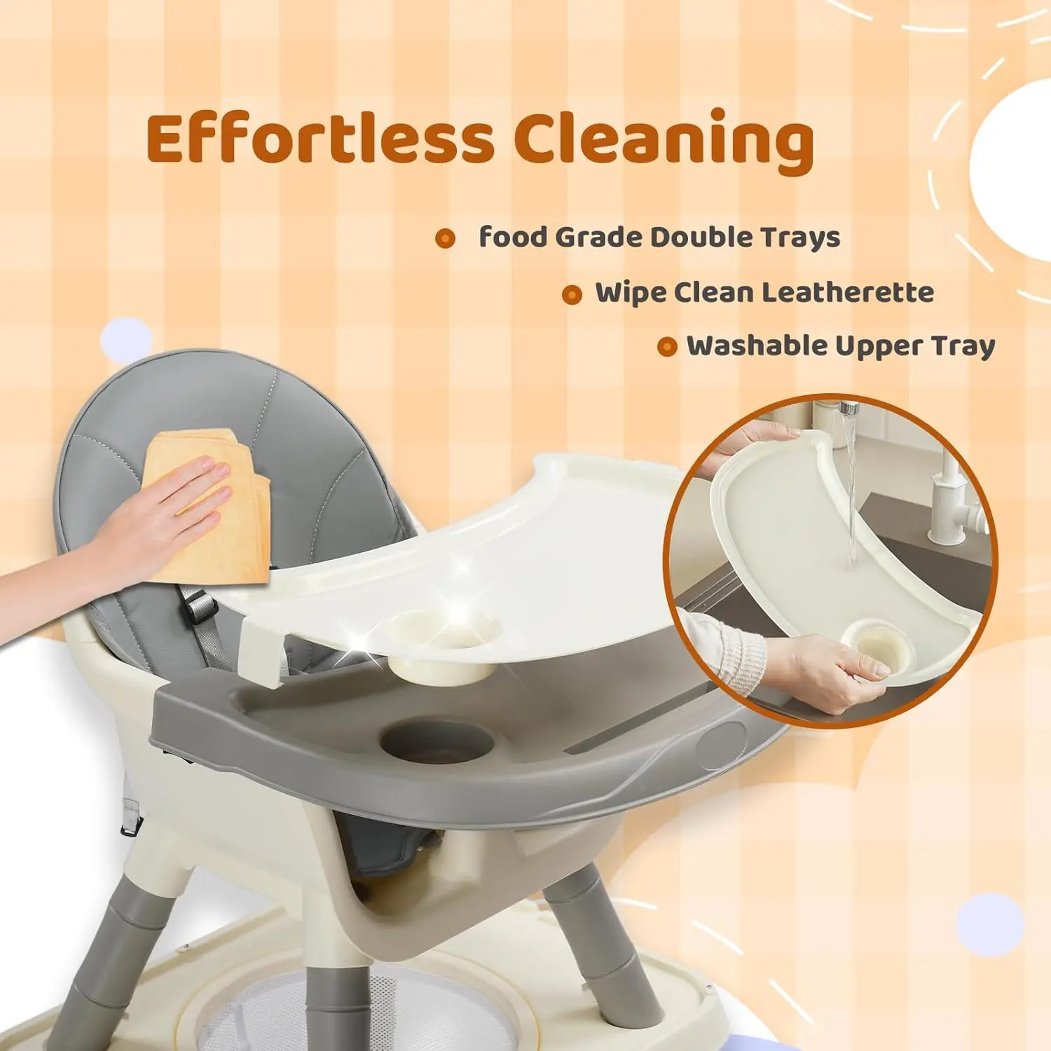 ·3-Second Clean & Tool-Free Setup: Waterproof PU seat wipes clean instantly – no scrubbing fabric stains. Self-locking joints assemble in 3 minutes – no tools needed!