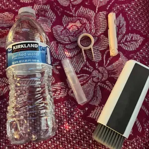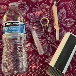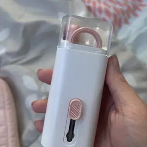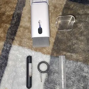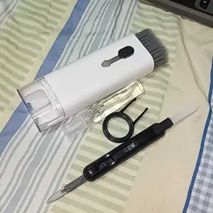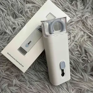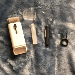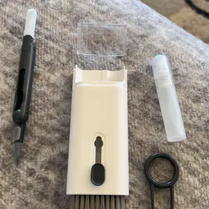 ·【7 in 1 Multifunctional Cleaner Kit】 electronic cleaning kit includes a cleaning pen for Airpods with silicone tip, mini brush and flocking sponge brush; high-density soft brush, cleaning spray bottle(empty), fiber fleece swipe and keycap buckle.