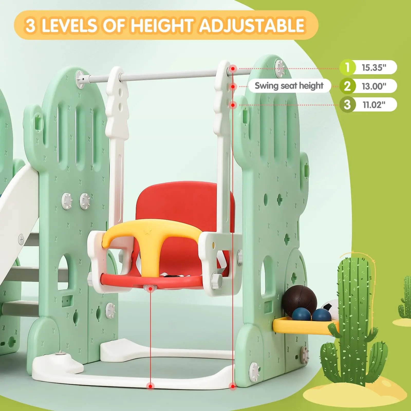· 7-in-1 playground set for diverse play experiences