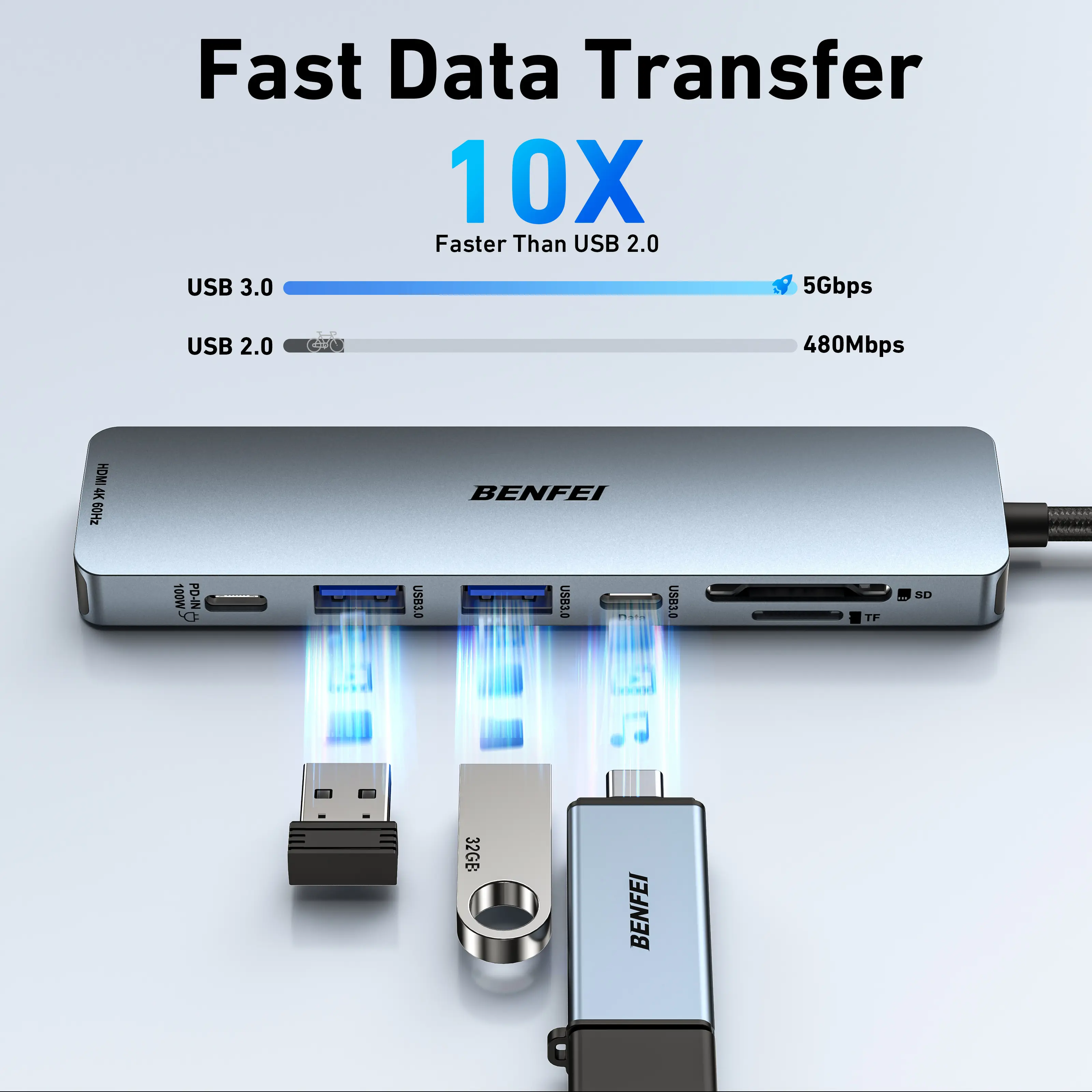 ·【Design centered on comfort and reliability】Thanks to BENFEI's end-to-end in-house cable production capability, in-house PCBA and assembly capability, using the industry's most advanced silicone woven design and process, 20cm cable in length, no knots, super-soft, the HUB is easy to use in all scenarios: laptop, tablet, stand etc. Super-soft, 25000+ life cycles, to meet your daily carrying and office needs.