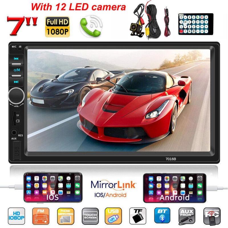 Car Radio MP5 Player Acodo 2 din Stereo 7 Inch 7018B Touch Screen Automotive Multimedia Bluetooth Link USB / TF Monitor With 12LED Rear Camera
