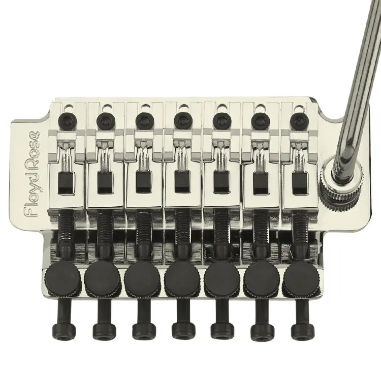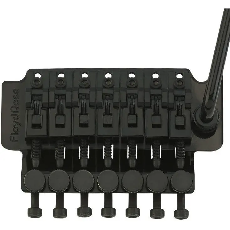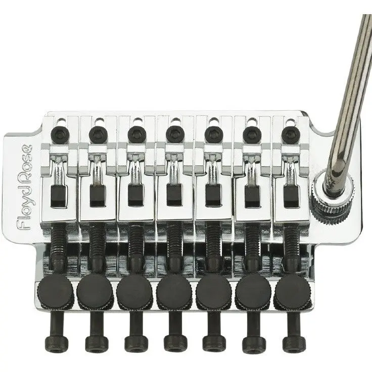 The first, the only, the Original double-locking tremolo system used by more professionals than any other! The Floyd Rose Original is precision-made in Germany, engineered to exacting specifications using high-quality hardened steel and a nickel-plated brass sustain block. The 7-string tremolo kit contains the bridge, springs & claw, mounting studs, locking nut and all hardware necessary for installation.