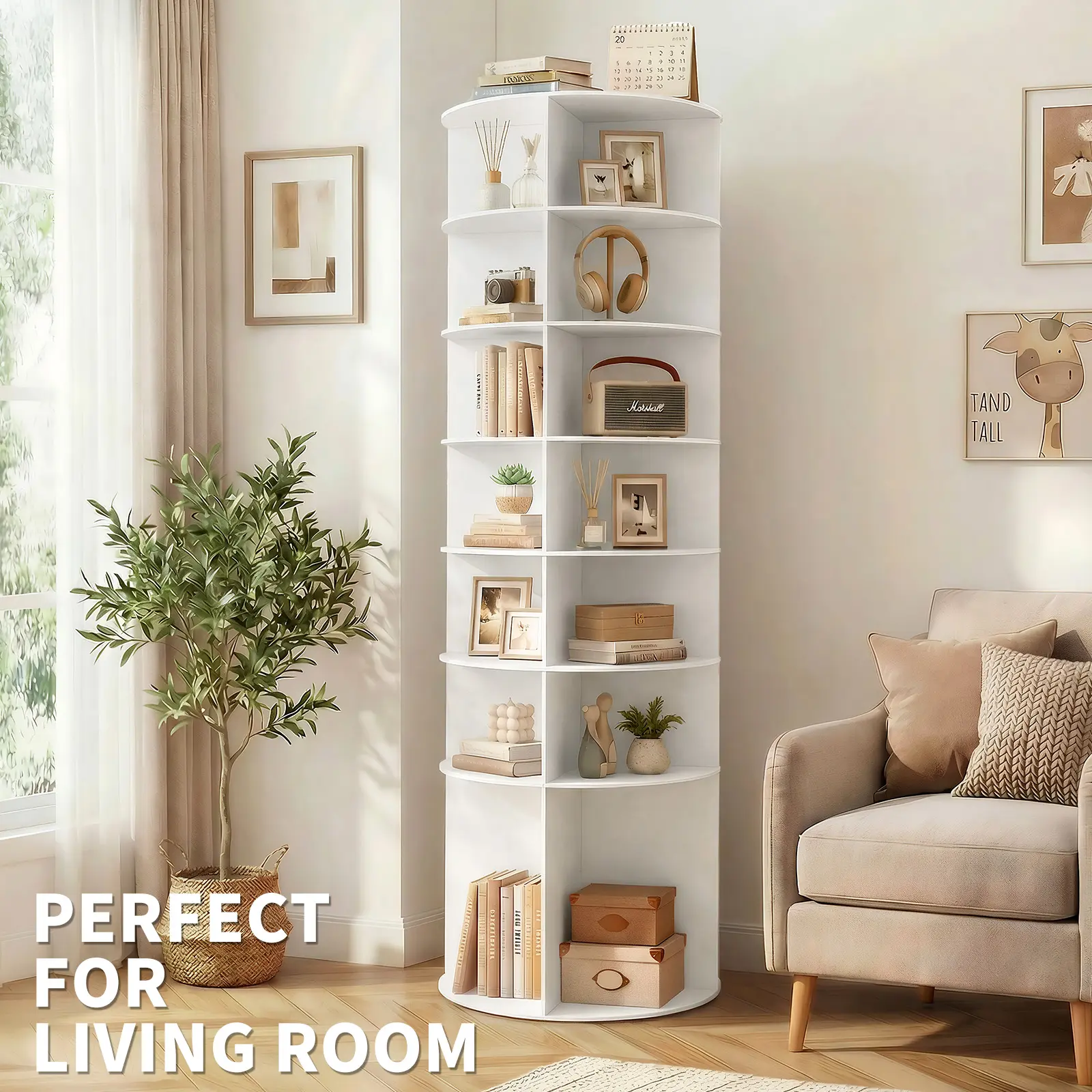 This innovative 7-Tier 360 ° Rotating Shoe Rack is a space-saving marvel designed for optimal organization and effortless access to your footwear collection. Constructed from robust wood-plastic composite (WPC) materials, it offers exceptional durability and a fresh white finish that brightens any space. Measuring 60cm in width, 60cm in depth, and 184cm in height, its tall, square silhouette houses seven spacious tiers, providing abundant storage in a compact footprint. The standout feature is the smooth 360-degree rotation, allowing you to view and select shoes from all sides without moving the unit. Ideal for entryways, closets, or bedrooms, this rack ships in a convenient flat-pack box (64cm x 64cm x 23cm, 19.7kg) for easy transport and assembly, with a net product weight of 17kg.